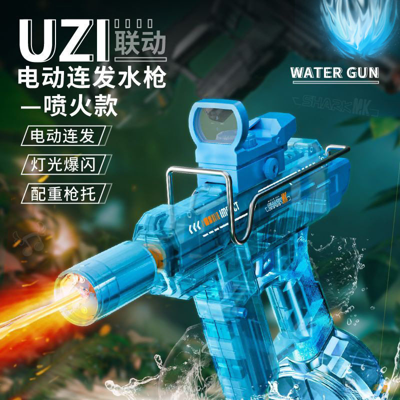 火光新款水枪爆闪UZI连发电动玩具喷水高压自动强力儿童玩具