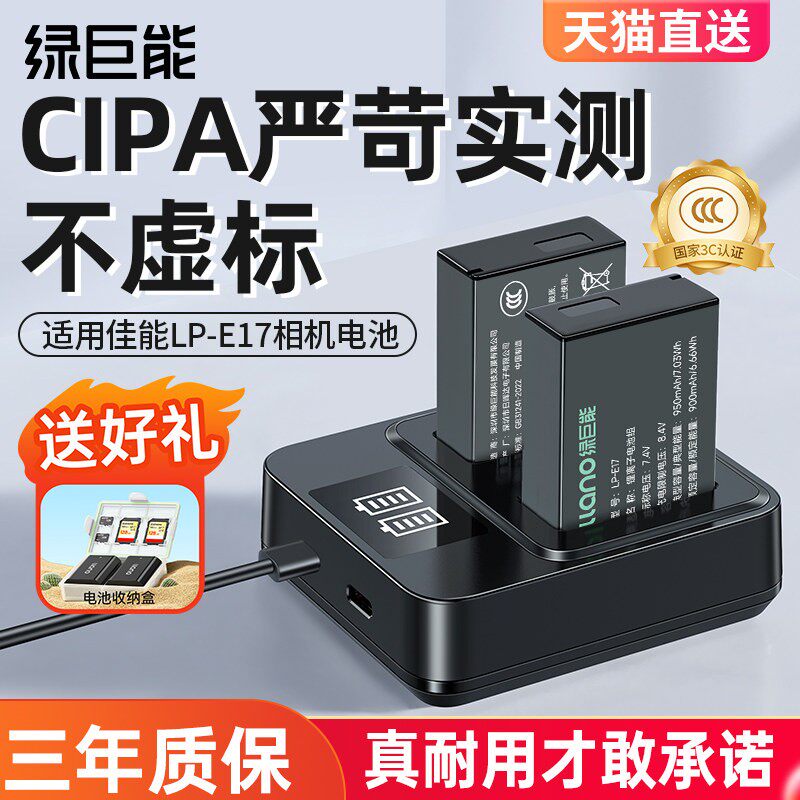 【国家3C认证】绿巨能LP-E17相机电池适用佳能R50 R8 R10 m6mark2 RP 200D二代750D 760D 800D r50v充电器e17