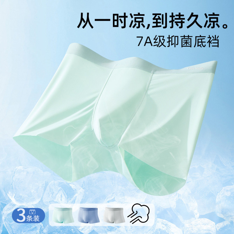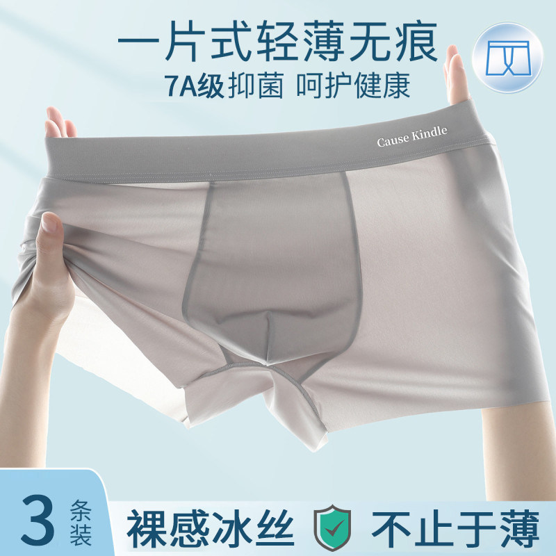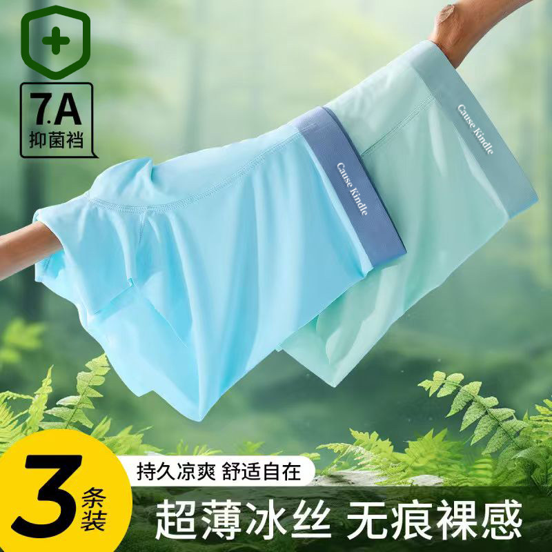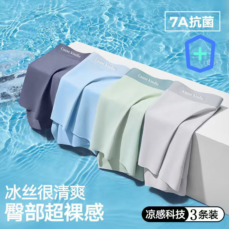 Cause kindle男士内裤冰丝无痕凉感透气超薄运动青年四角裤裤衩