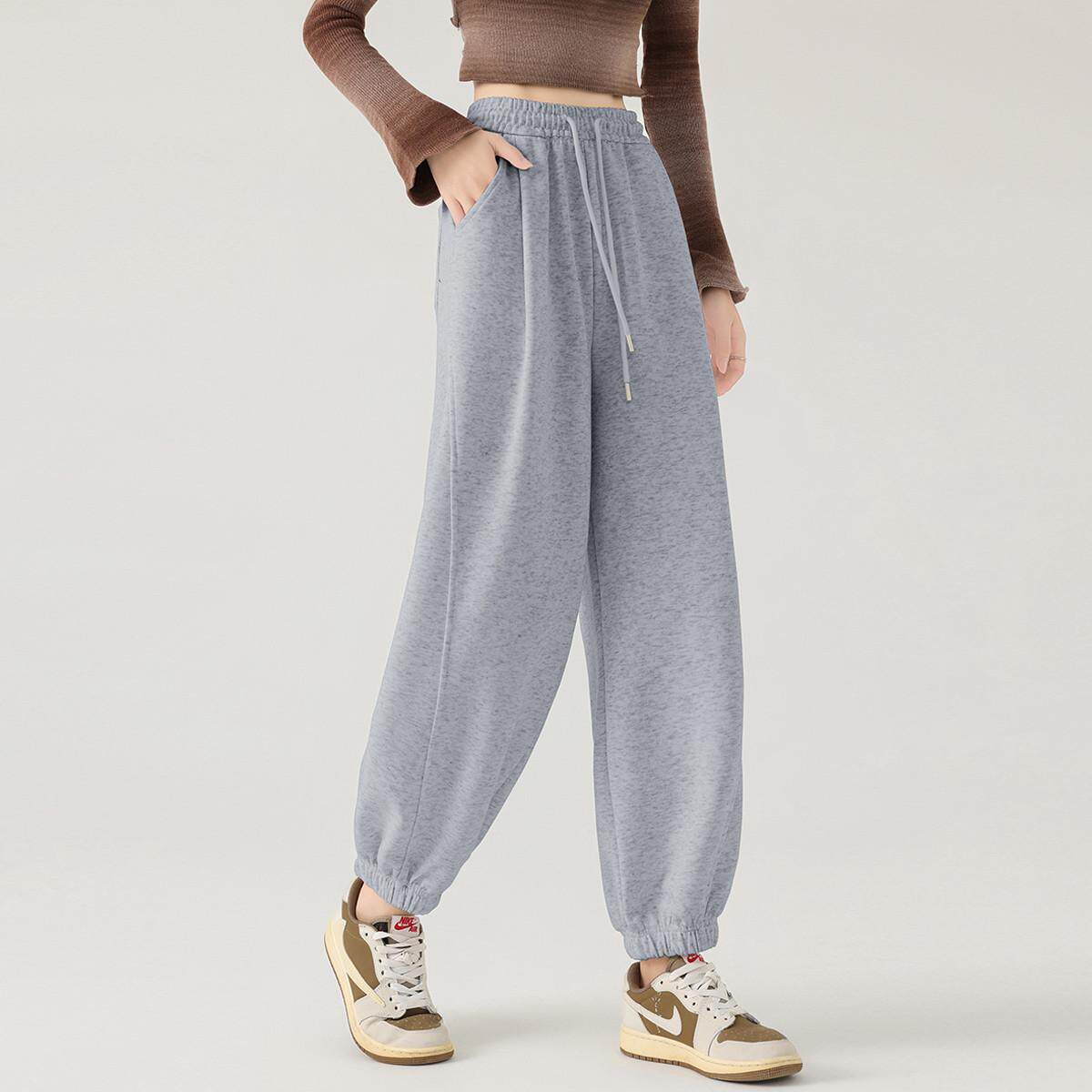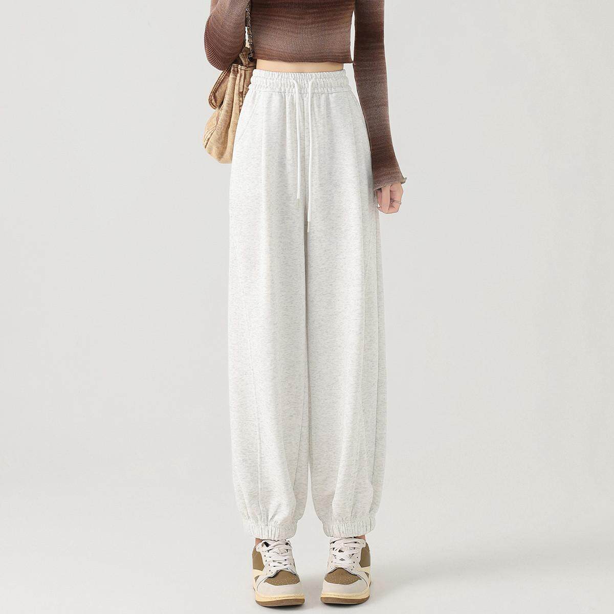 one more宽松束脚裤休闲卫裤女2025秋季新款抽绳高腰香蕉裤九分裤