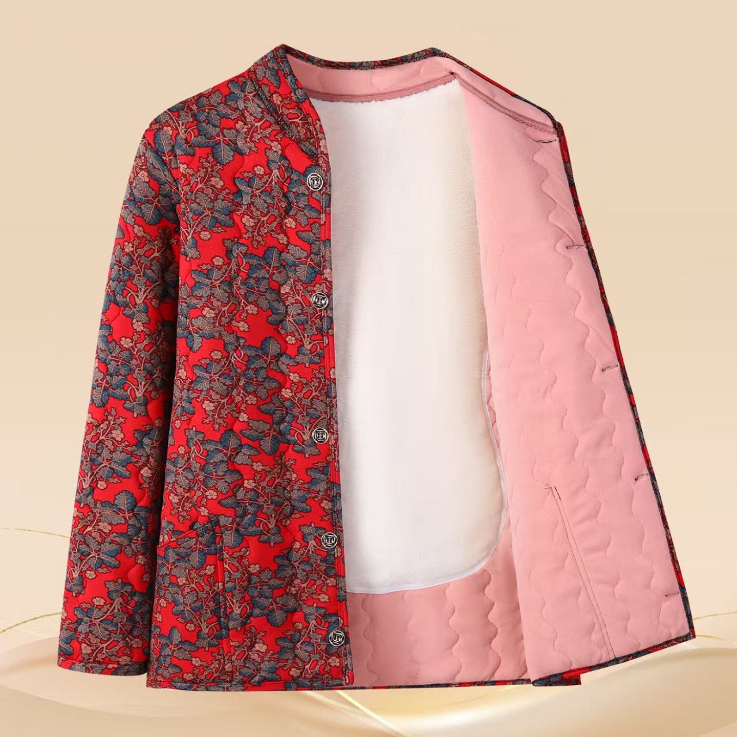 妈妈冬装碎花棉衣中老年人新款加绒贴片保暖棉服奶奶内外穿小棉袄