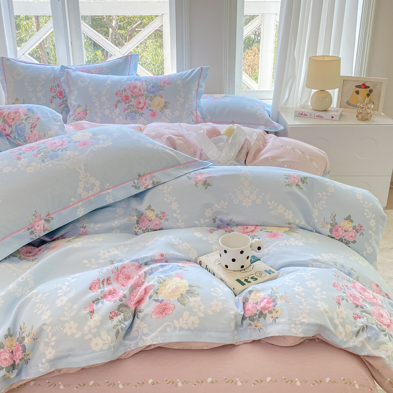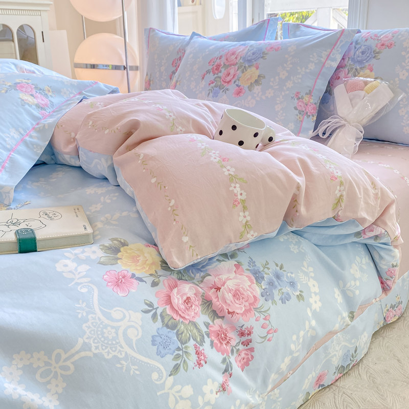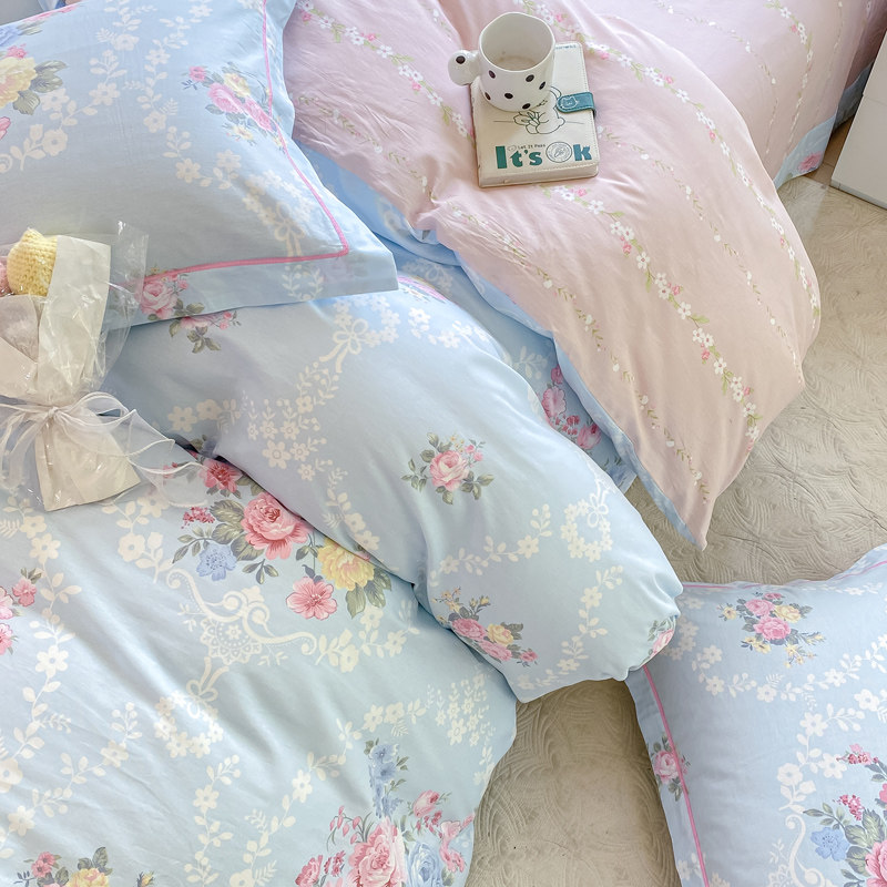 A类双层纱床上四件套纯棉全棉新款田园床单件被套被罩宿舍三件套4