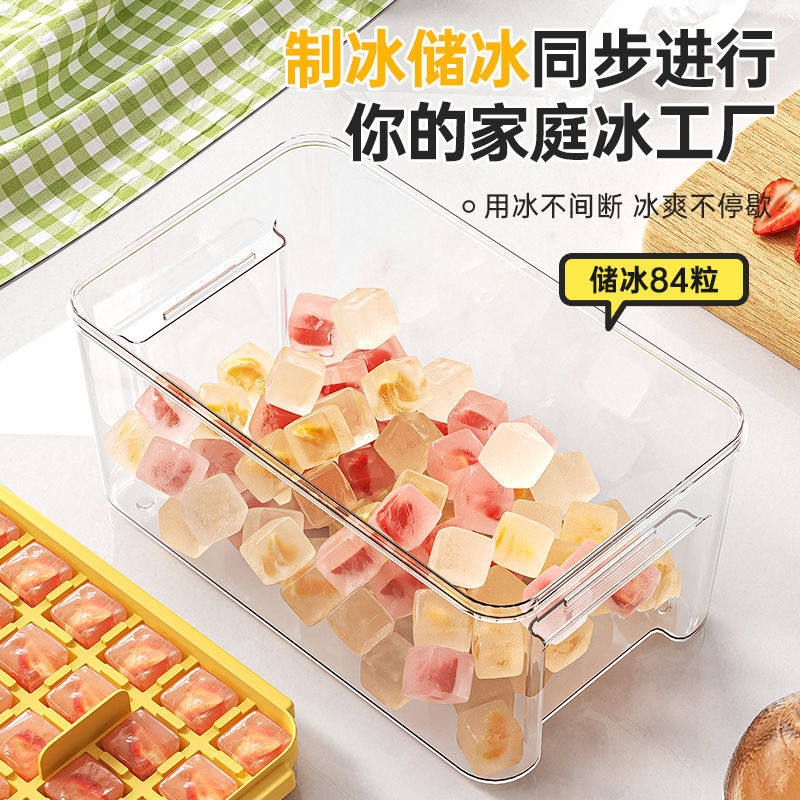 冰块模具大容量按压冰格家用食品级制冰储冰盒带盖冰箱冻冰块神器