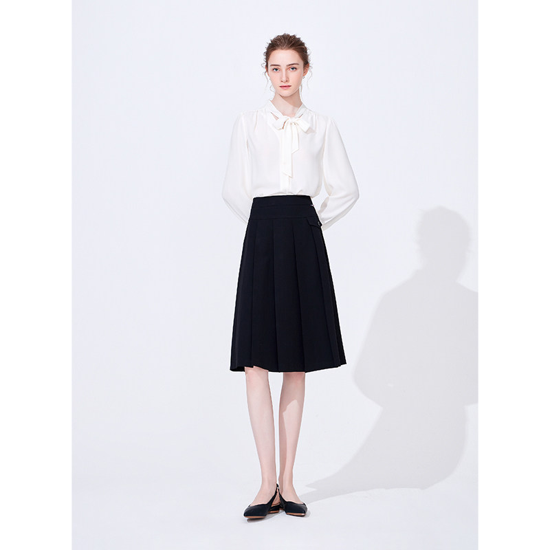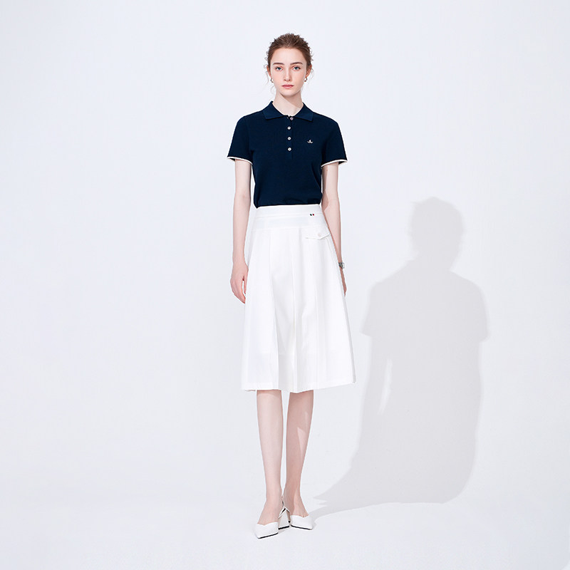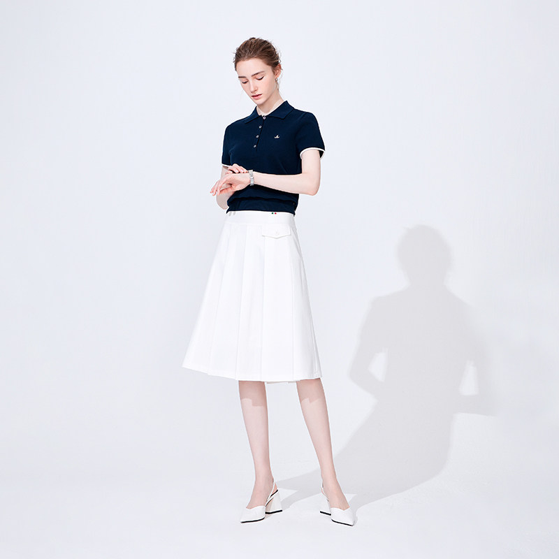 Navigare意大利小帆船白色设计感半身裙女休闲显瘦百褶裙a字裙子