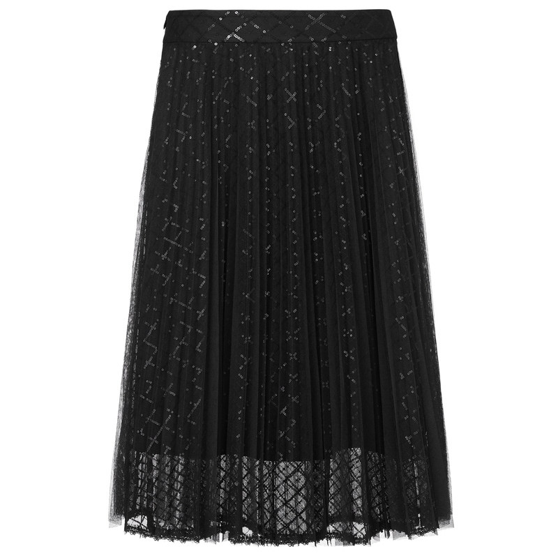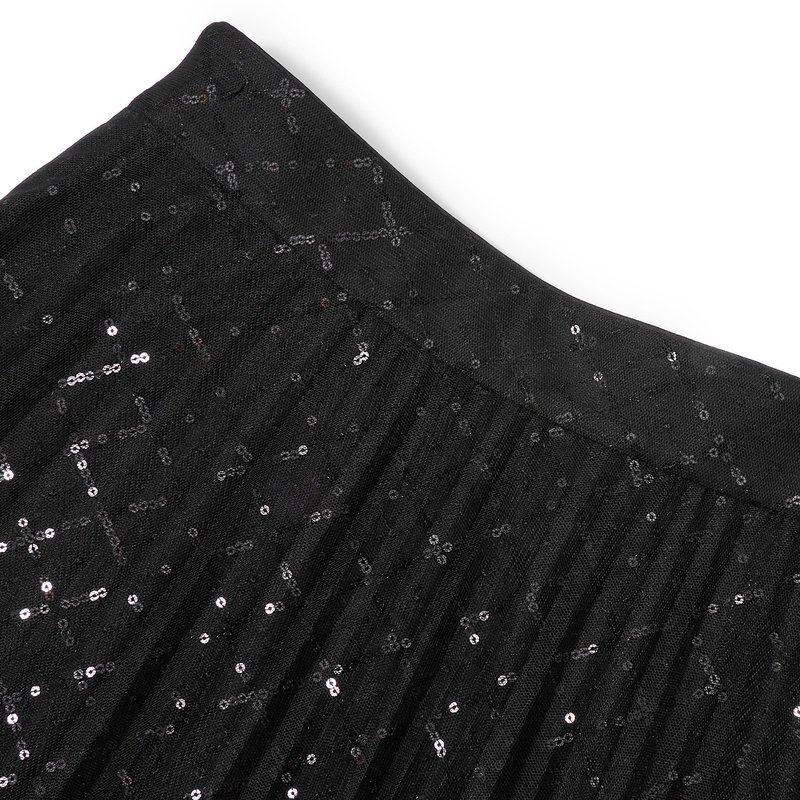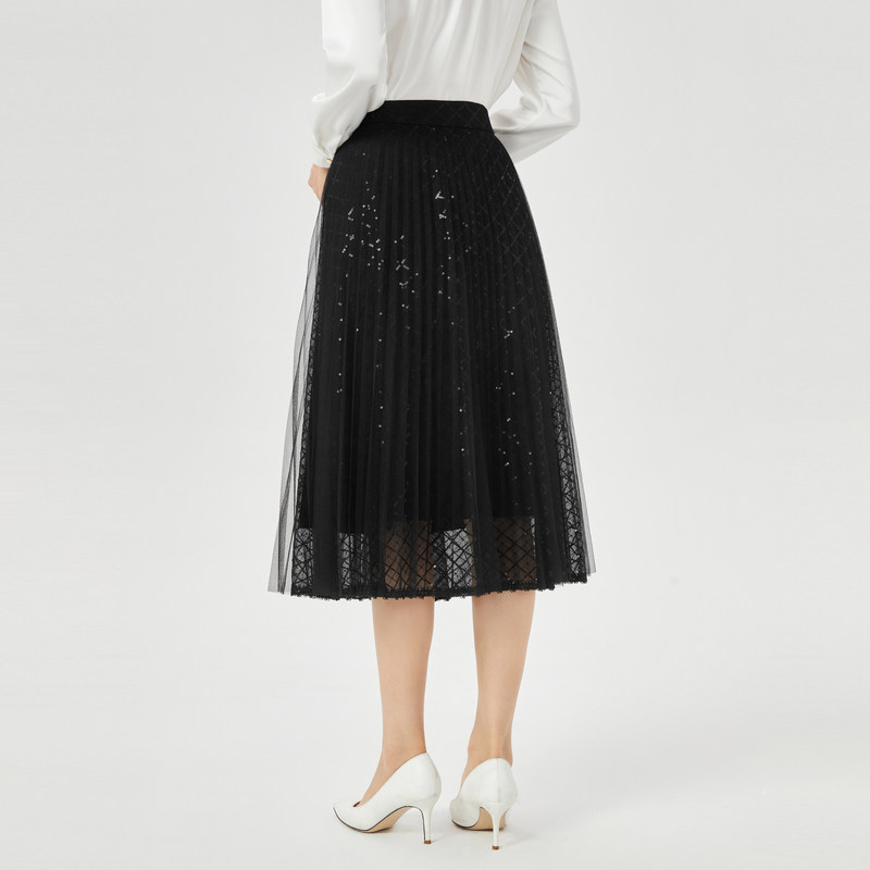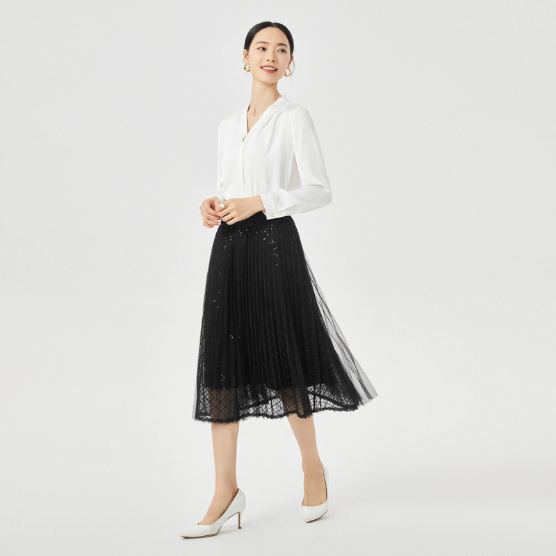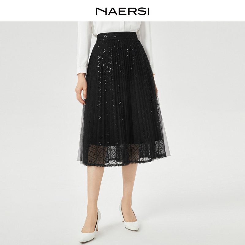 NAERSI/娜尔思优雅简约气质黑色蕾丝半身裙女2025早夏时尚百褶裙