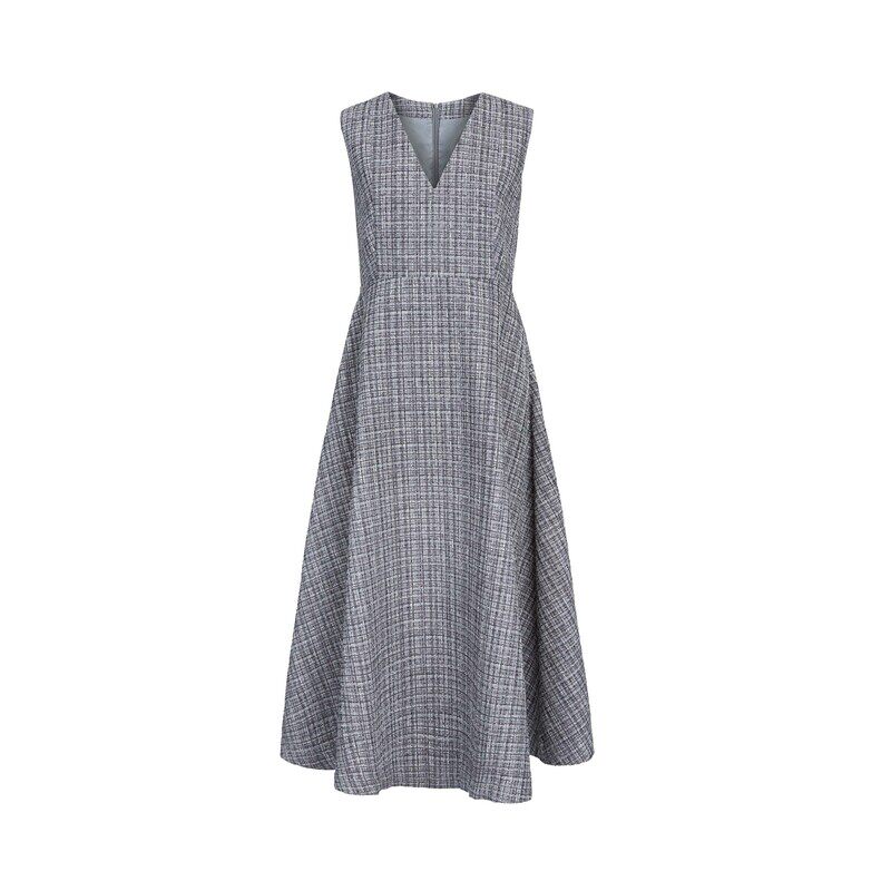 sdeer圣迪奥女装小香风套装V领格纹无袖连衣裙S23461202