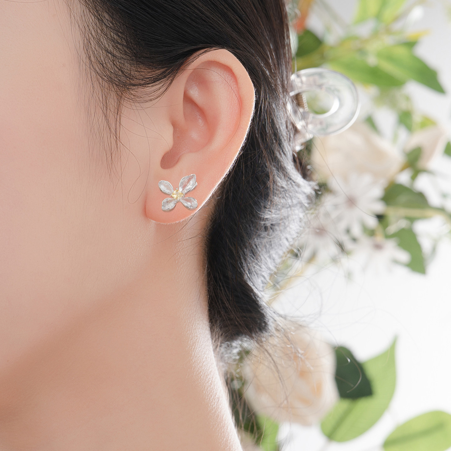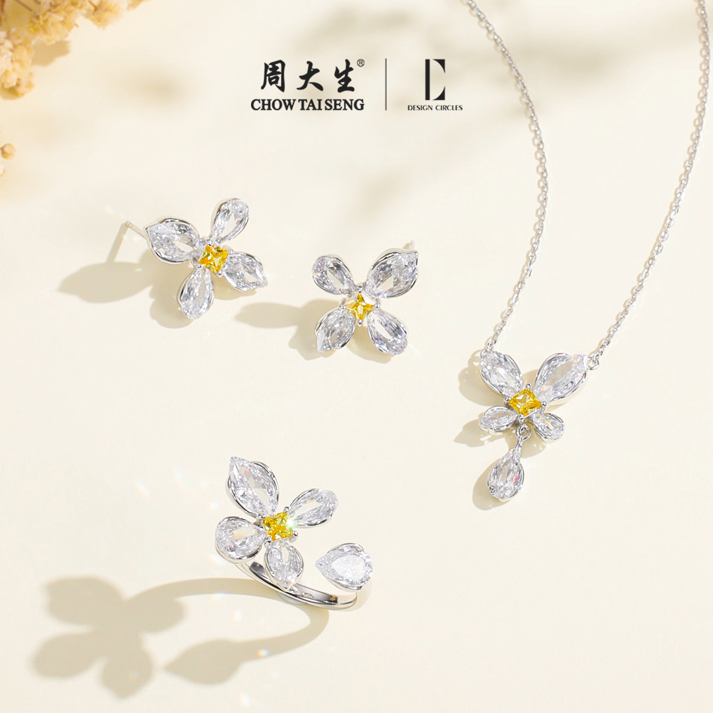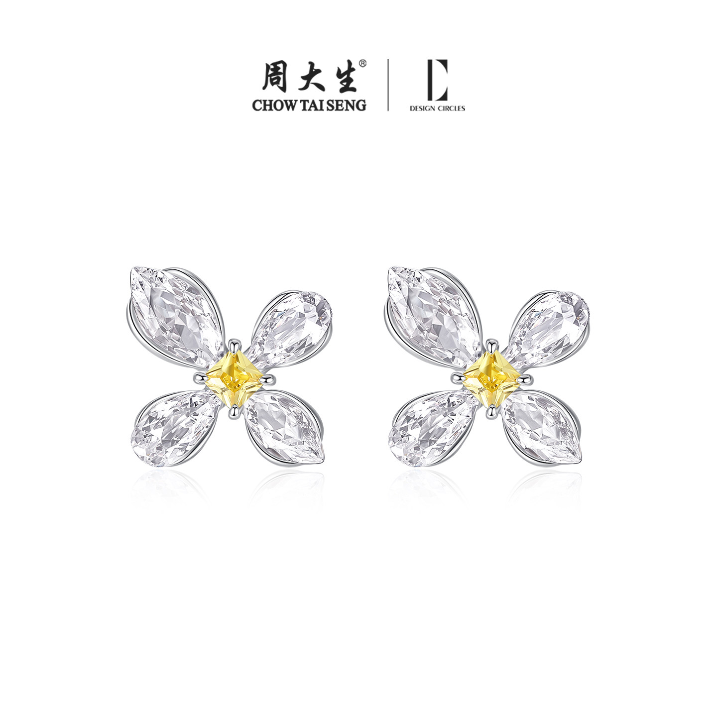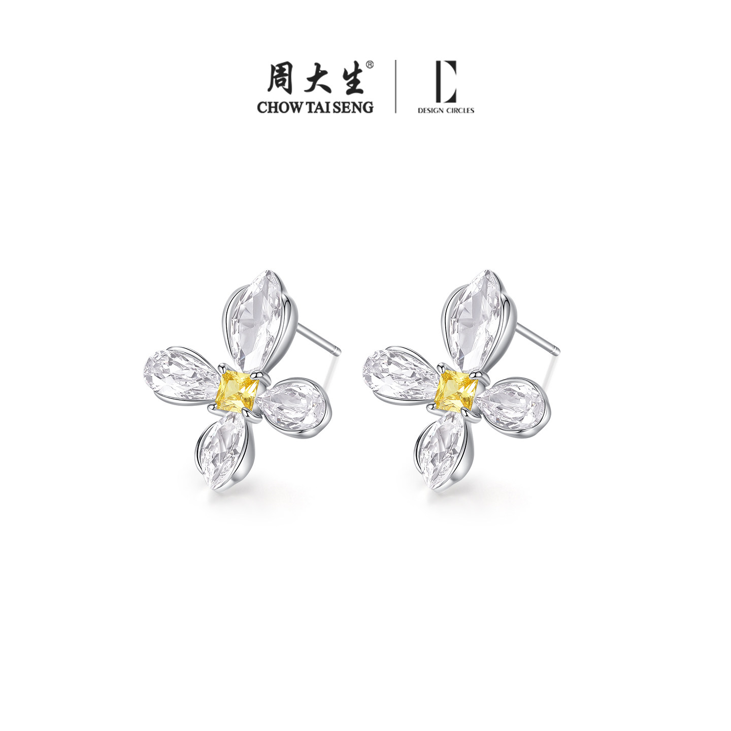 周大生*DC鸢尾花序耳钉四叶草纯银925耳饰轻奢精致生日礼物送女友