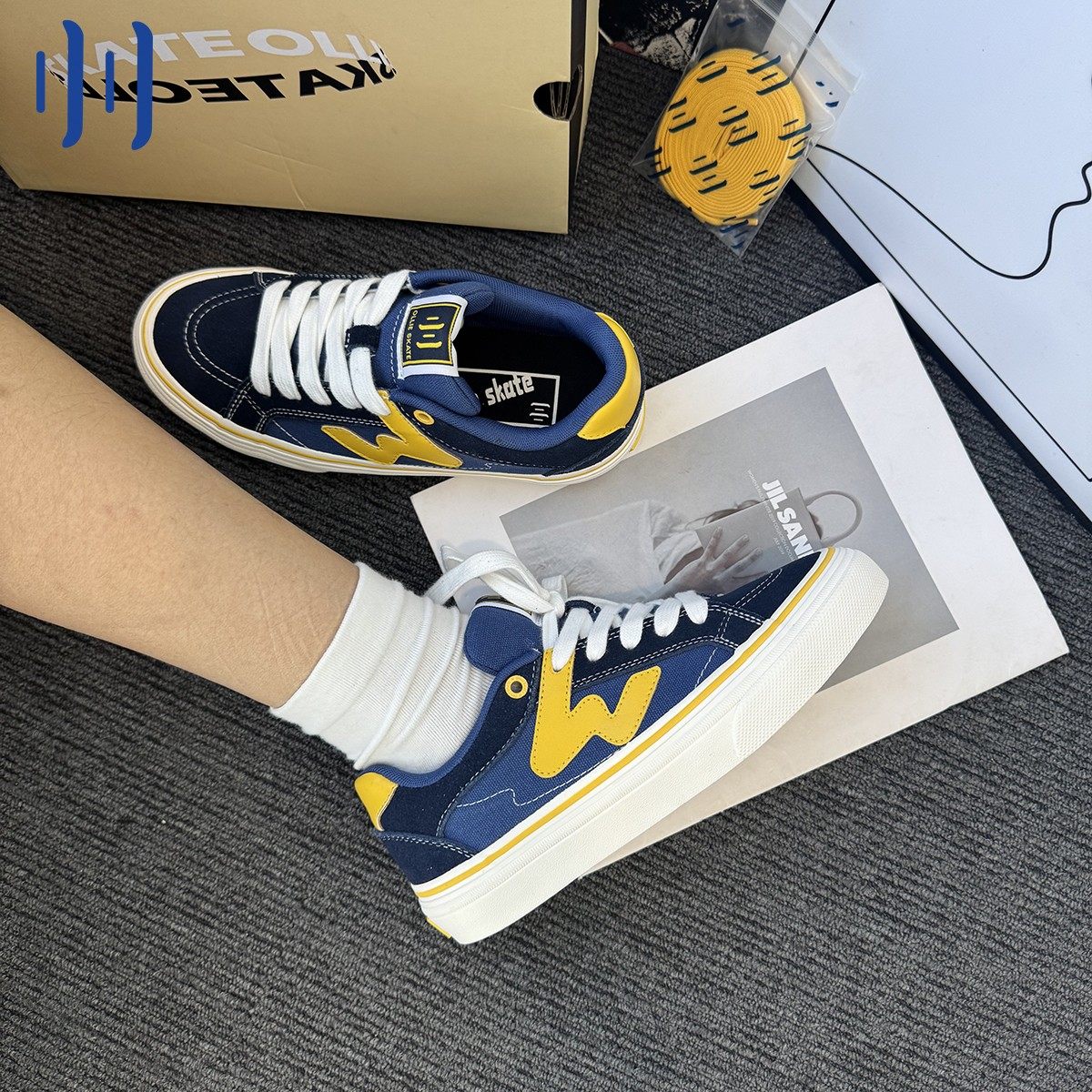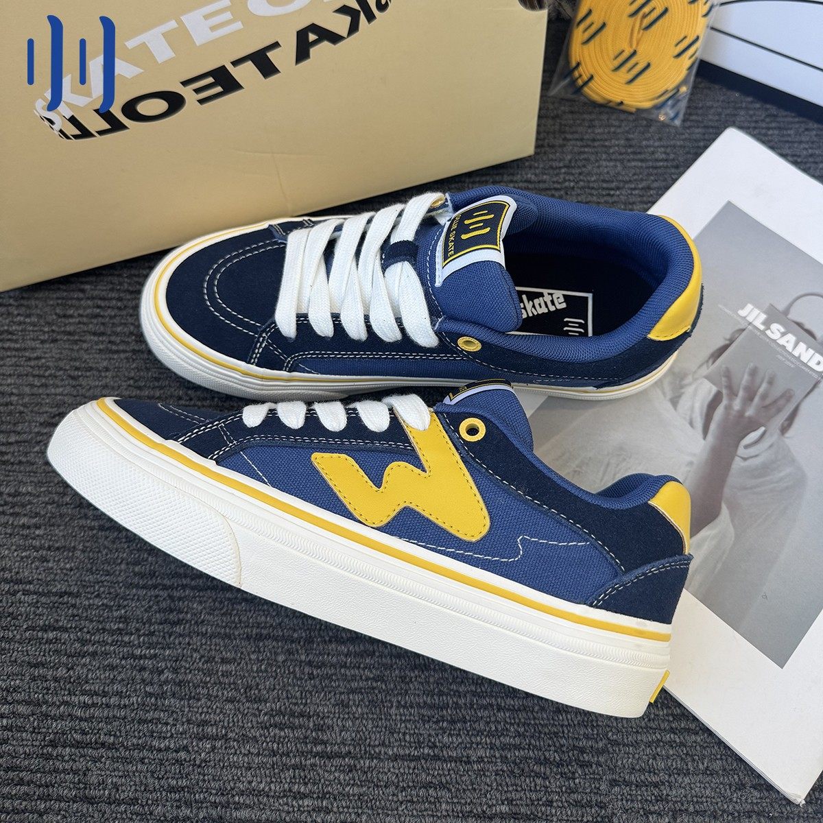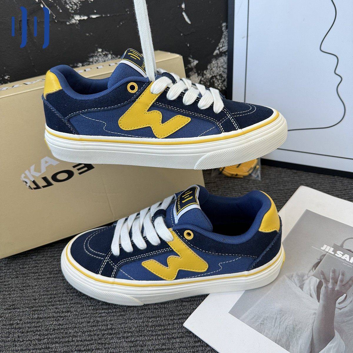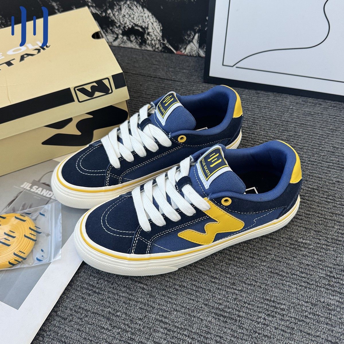 顽刻官方蓝黄拼色秋季校园风W系列休闲低帮男女国潮滑板鞋