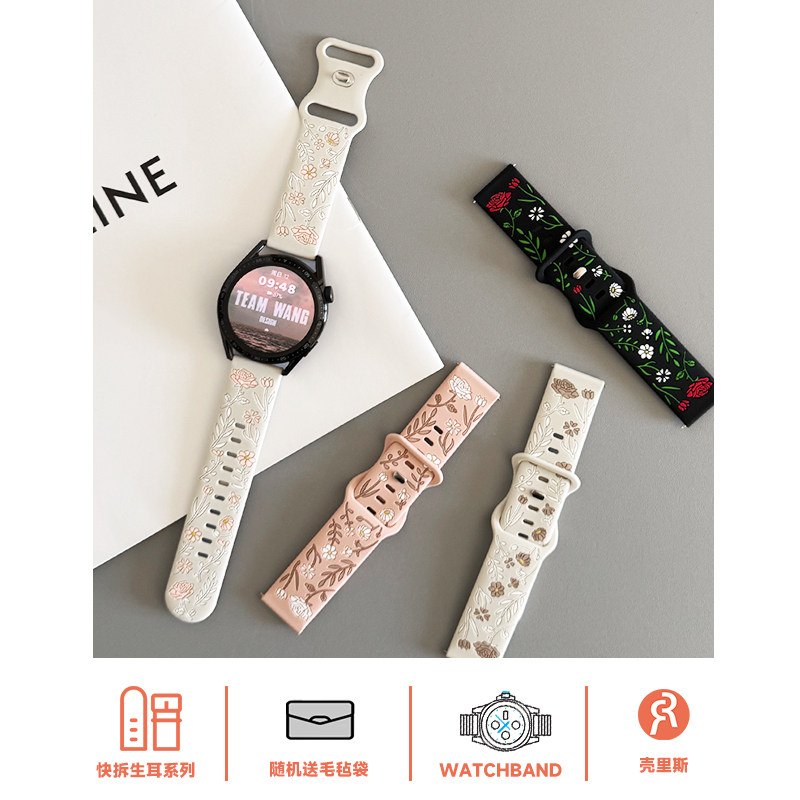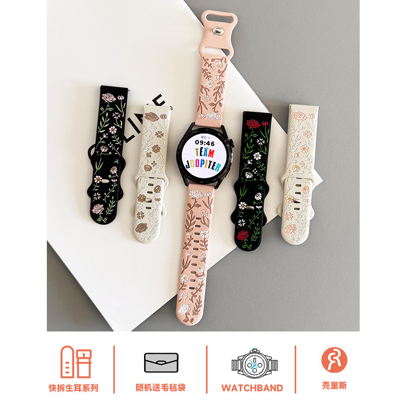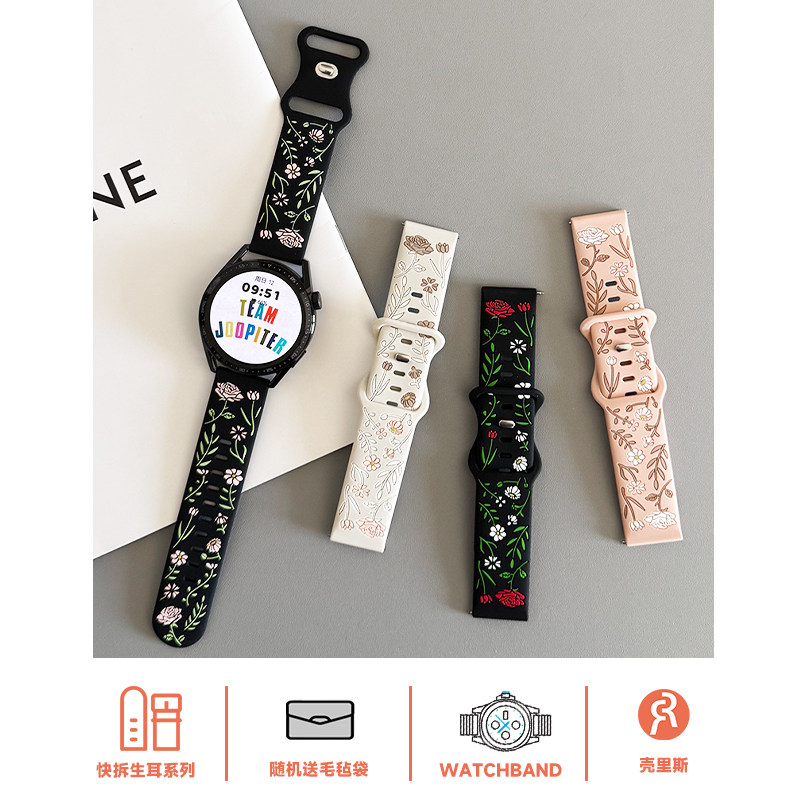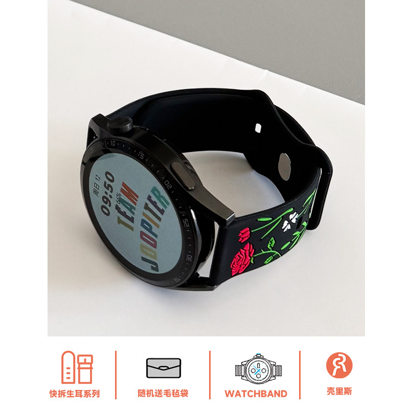 壳里斯GT5表带雕刻玫瑰花硅胶双色GT6适用Fit3华为watch4pro手表GT3荣耀2红米5新款S4小米8手环9ro苹果iwatch