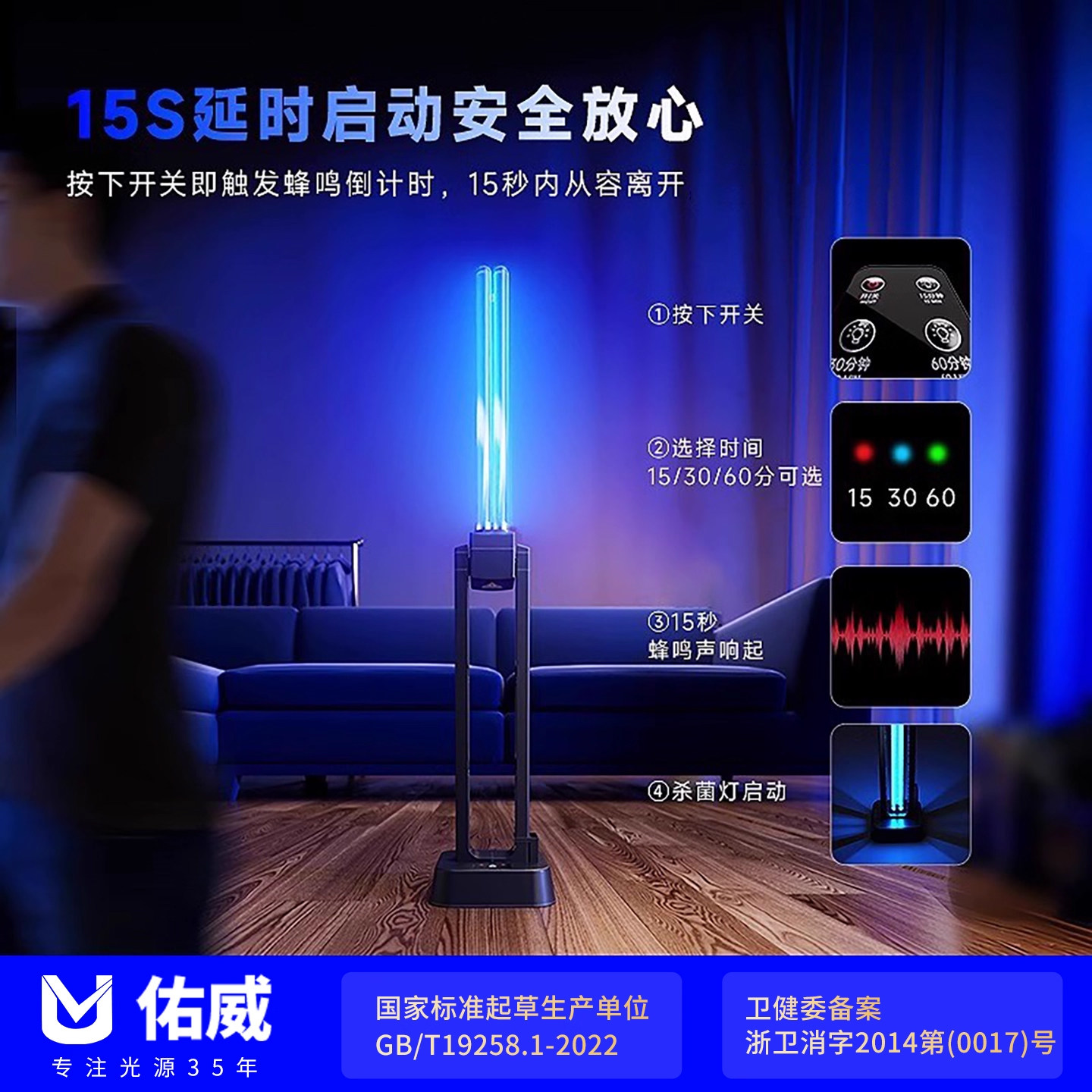 佑威紫外线消毒灯家用室内房间移动式医用宠物臭氧除螨灭菌杀菌灯
