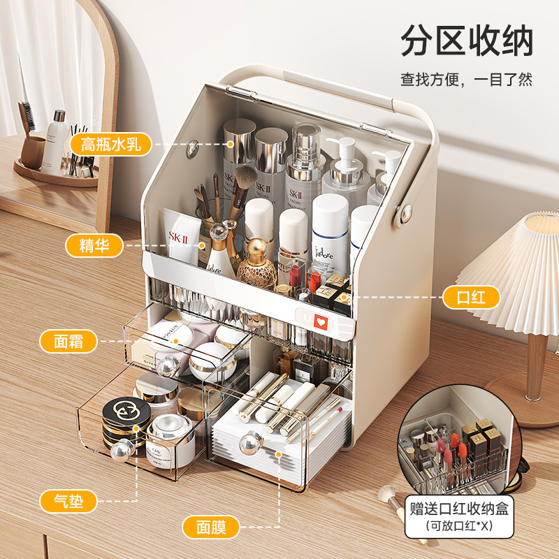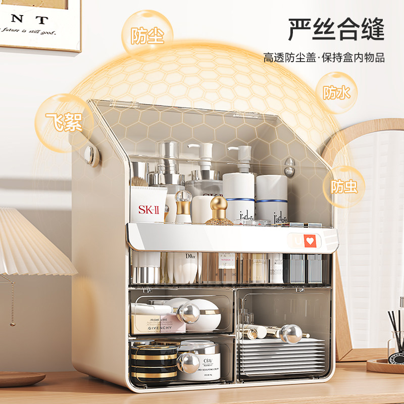 友耐化妆品收纳盒桌面防尘梳妆台护肤品口红置物架透明多层整理箱