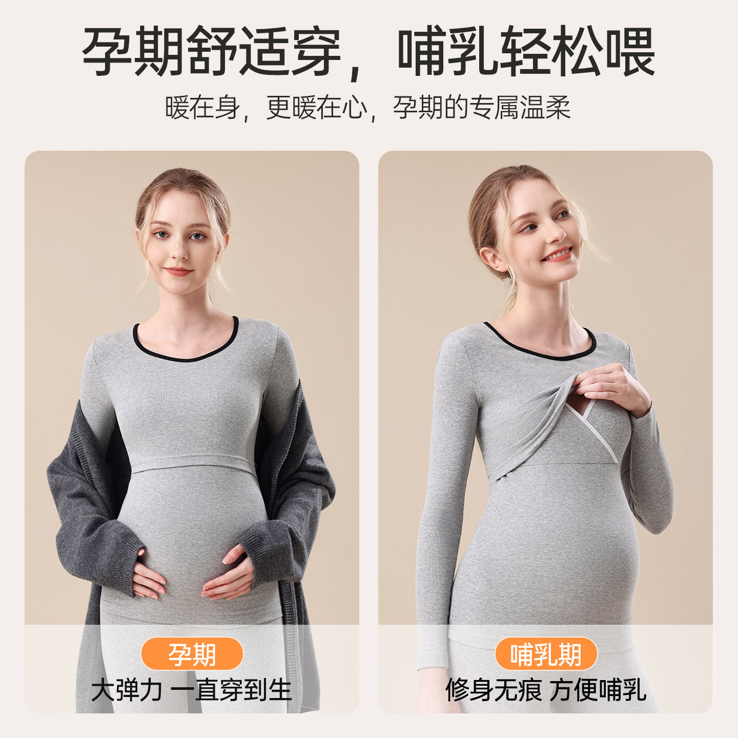 孕妇纯棉秋衣秋裤女套装产后哺乳睡衣喂奶月子服孕期保暖内衣冬季
