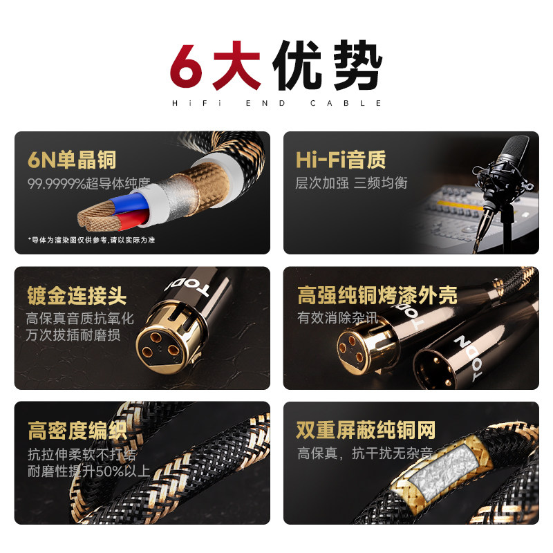 丹麦同顿 6N单晶铜发烧级卡农线麦克风话筒卡侬线连接线XLR平衡线