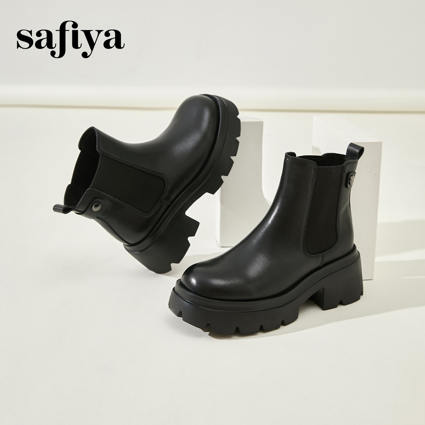 Safiya/索菲娅冬英伦风百搭小个子增高显腿长厚底套筒切尔西短靴