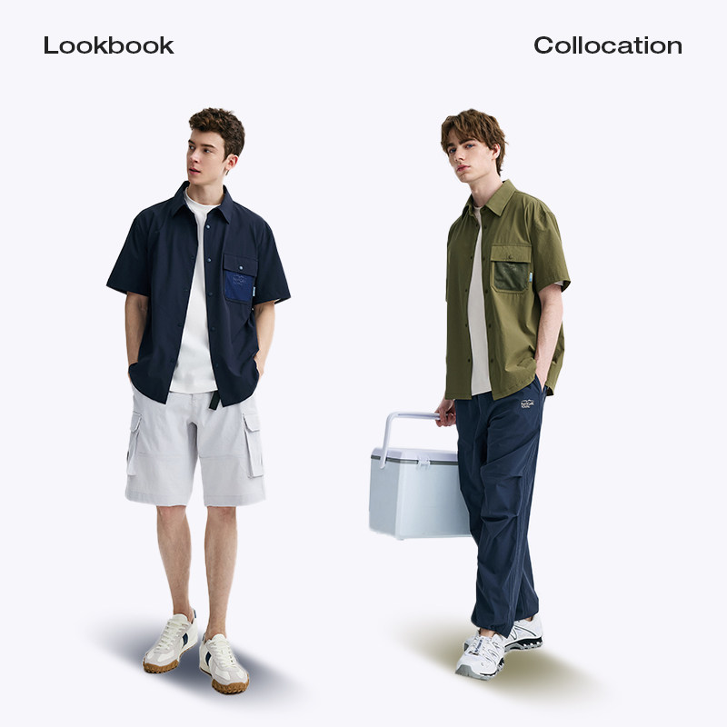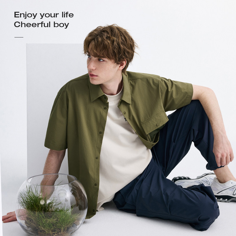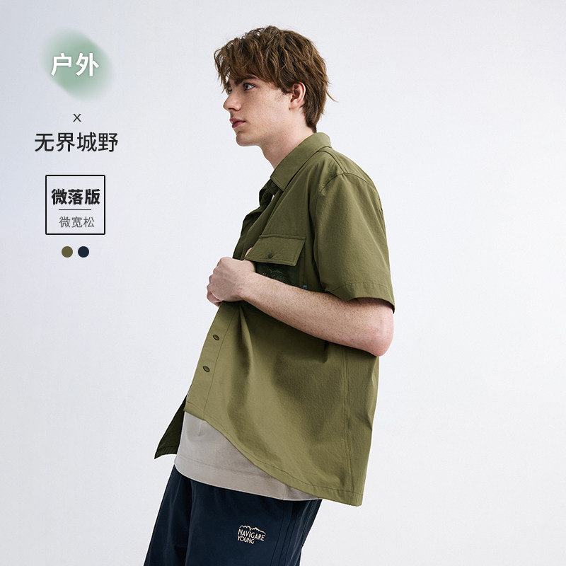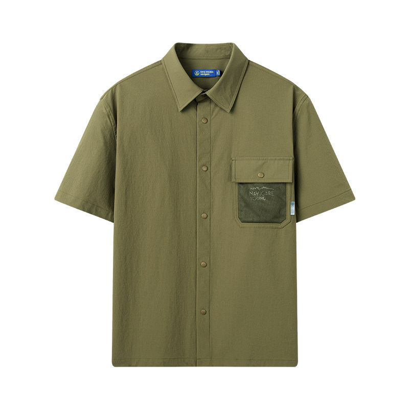 Navigare意大利小帆船绿色短袖衬衫男夏季宽松工装衬衣外套