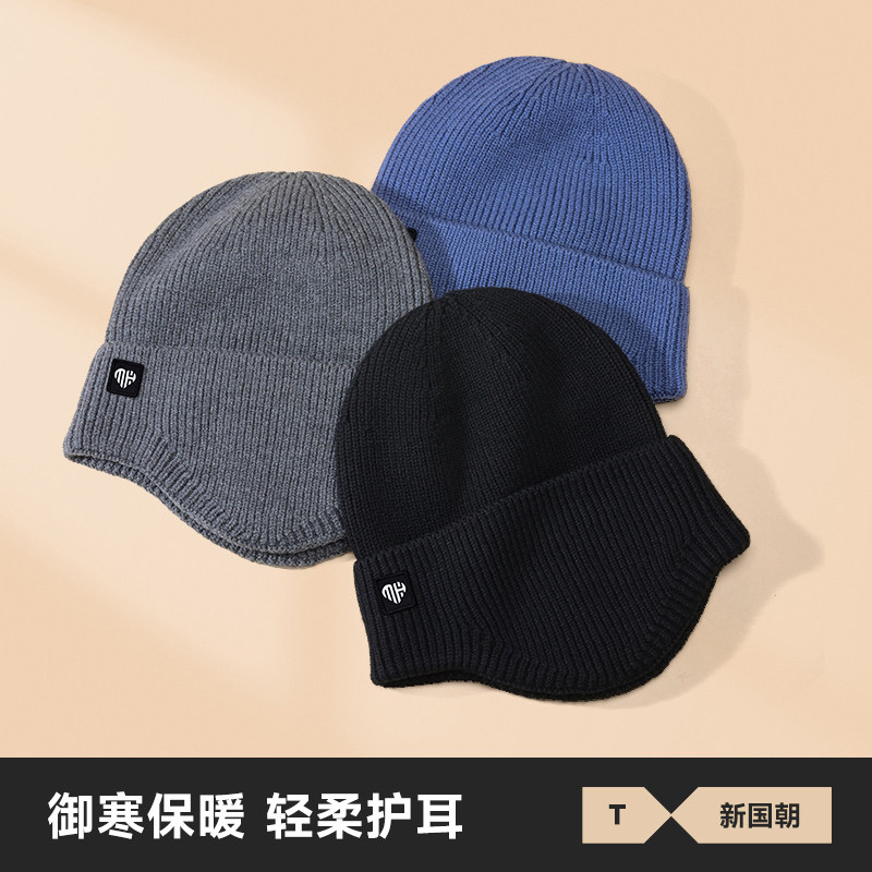 帽子男士秋冬潮毛线帽男款保暖百搭冷帽宽松大头围显脸小针织帽男