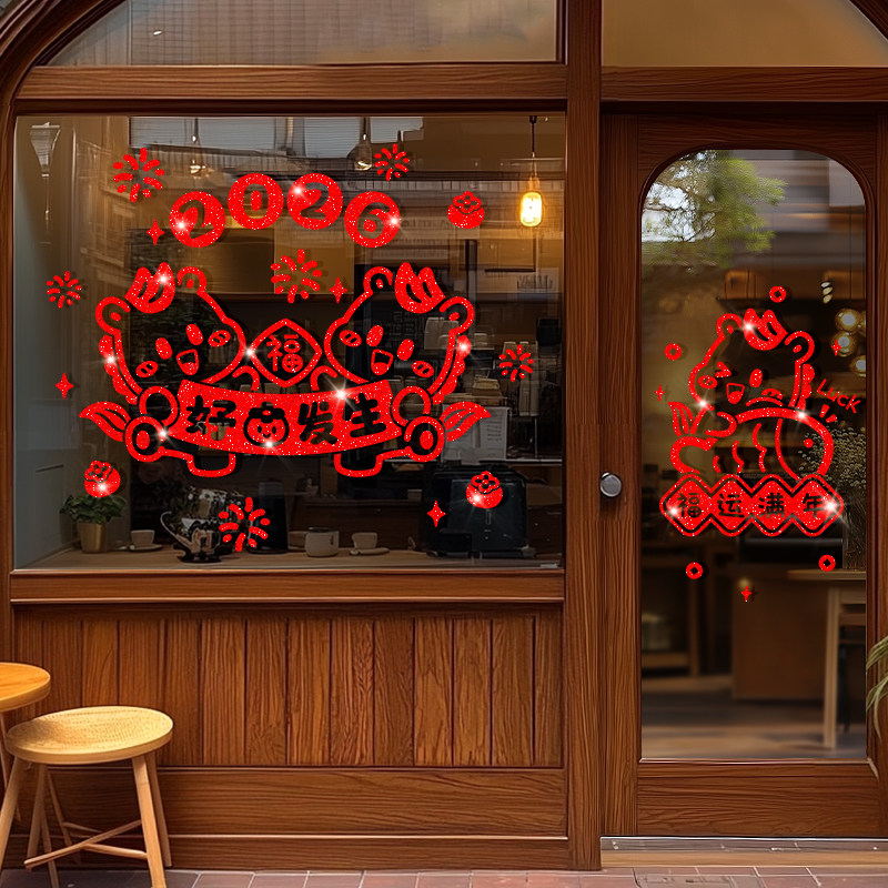 2026新年门贴橱窗玻璃静电贴画装饰春节过年场景喜庆窗花贴纸马年