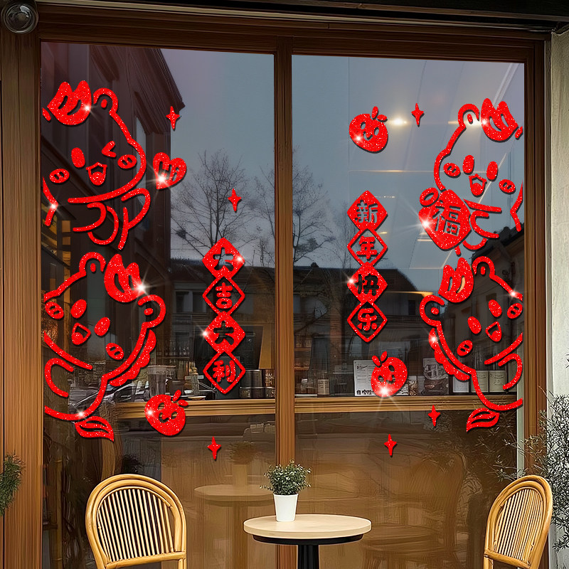 2026新年窗花马年装饰新款玻璃门贴纸静电橱窗贴春节氛围布置贴画