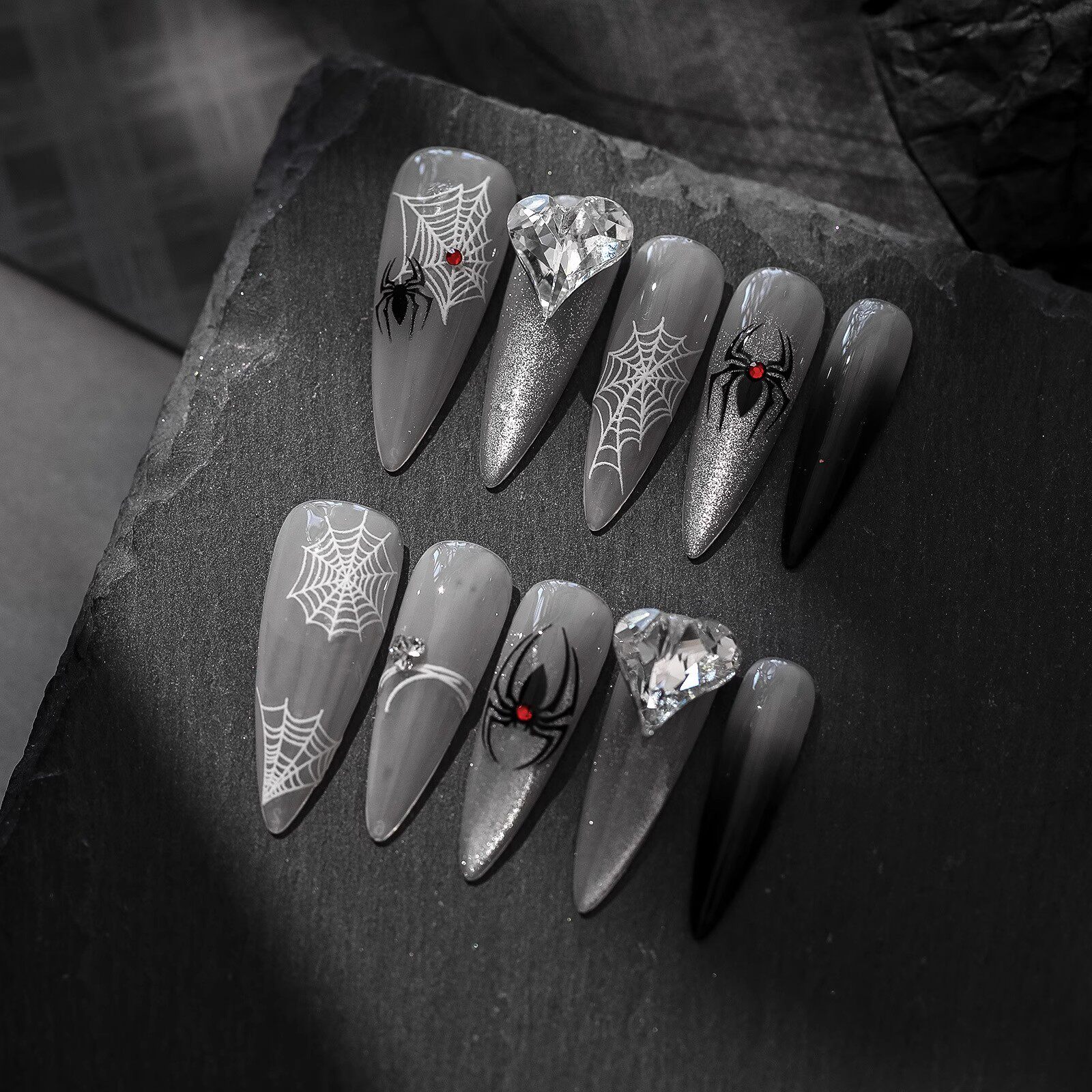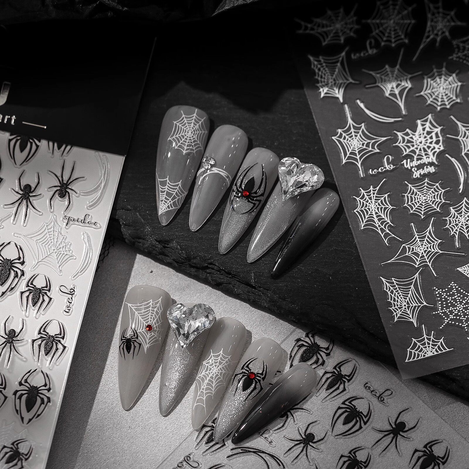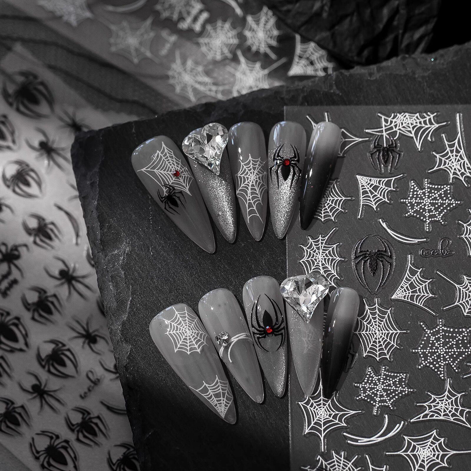 暗黑蜘蛛丝网美甲饰品贴纸复古万圣节镂空浮雕款蛛网指甲背胶贴花