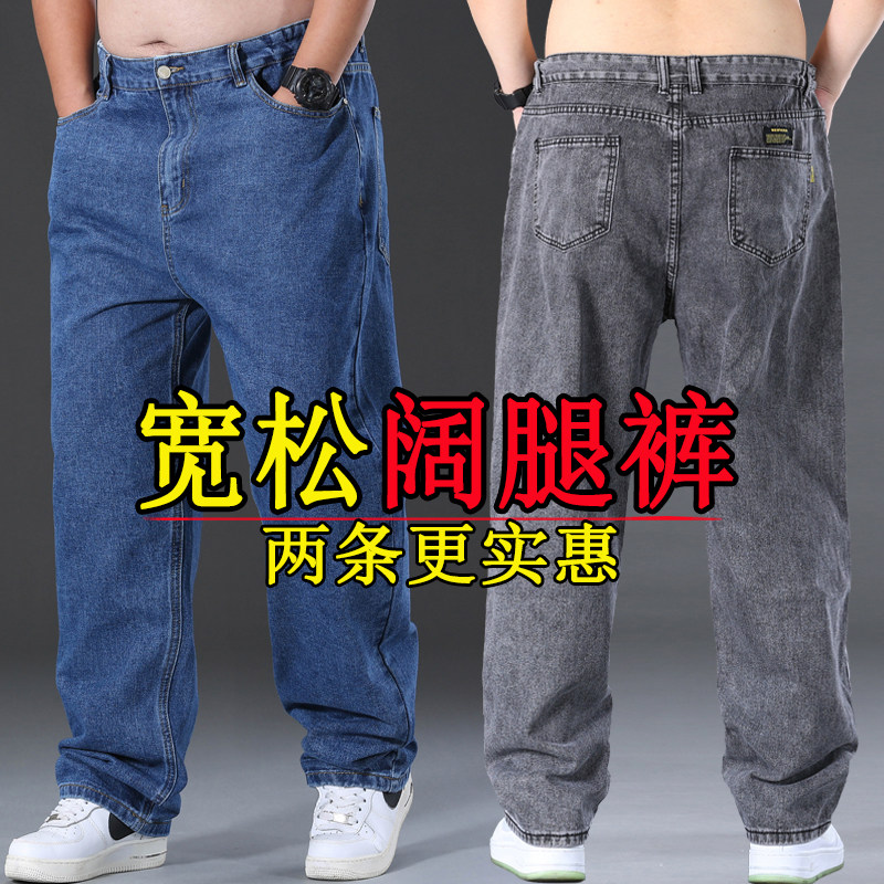 阔腿牛仔裤男士2025春秋新款美式复古宽松大码冬季休闲直筒裤子男