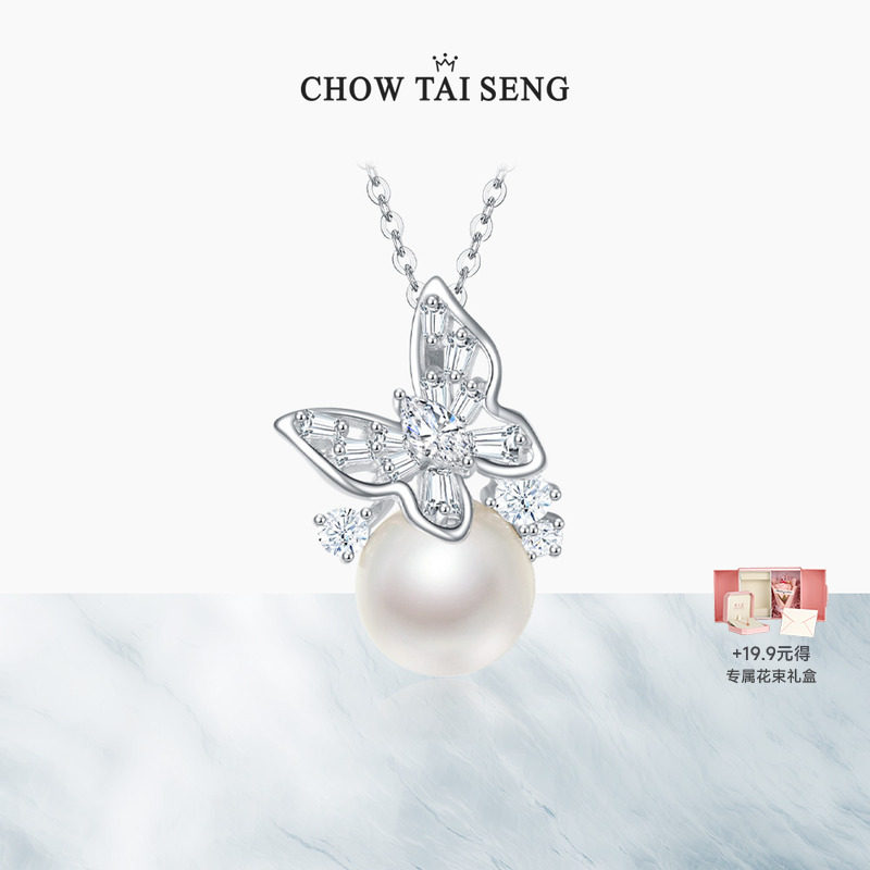 周大生蝴蝶项链女纯银时尚轻奢高级法式珍珠锁骨链生日礼物送女友