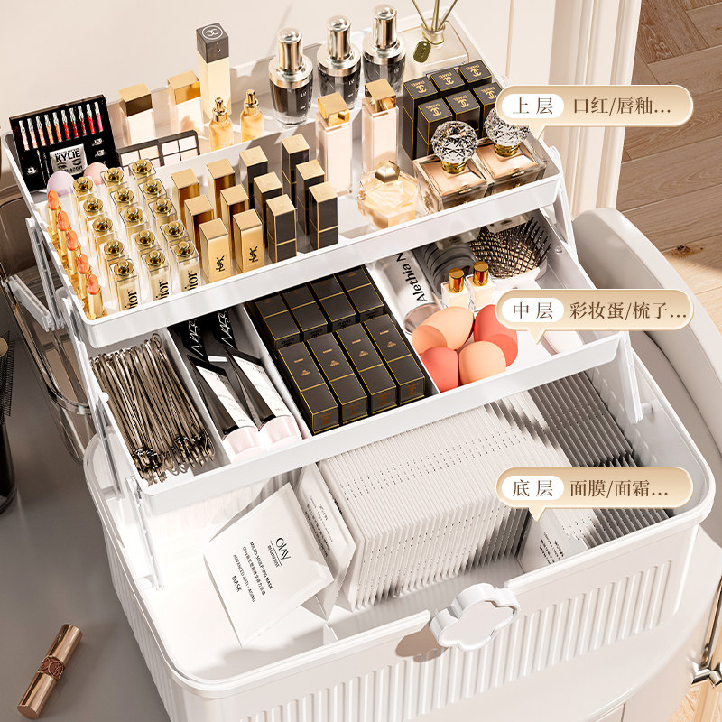 化妆品收纳盒防尘工具箱美甲收纳箱子带盖桌面大容量多层三层分层