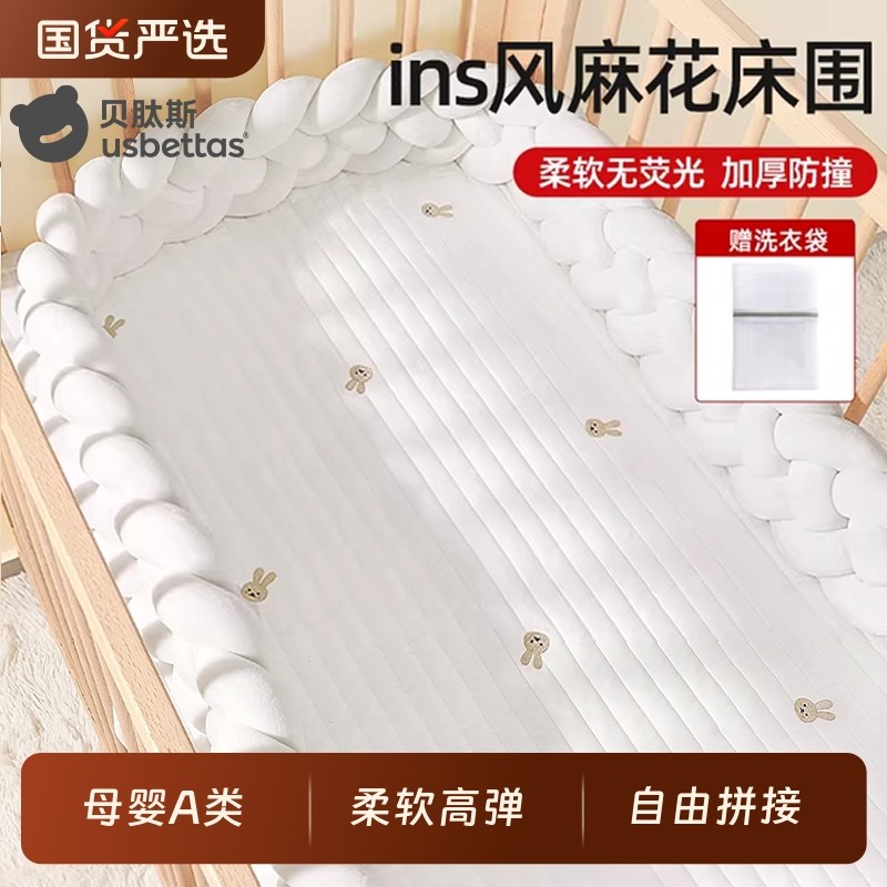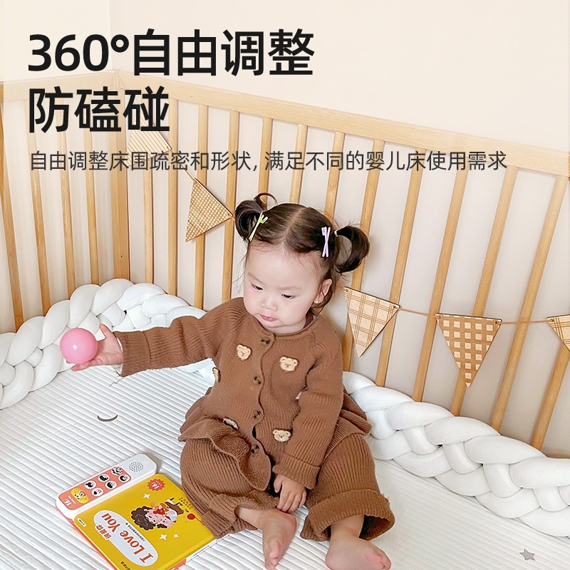 贝肽斯婴儿床围栏麻花软包新生儿防撞棉宝宝拼接床四面围挡布加厚