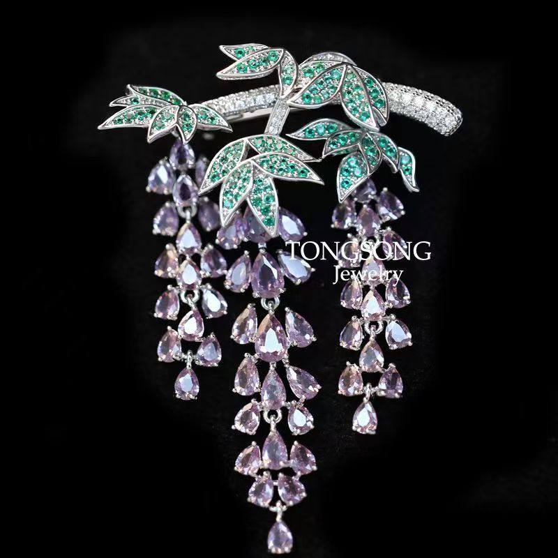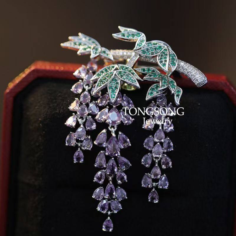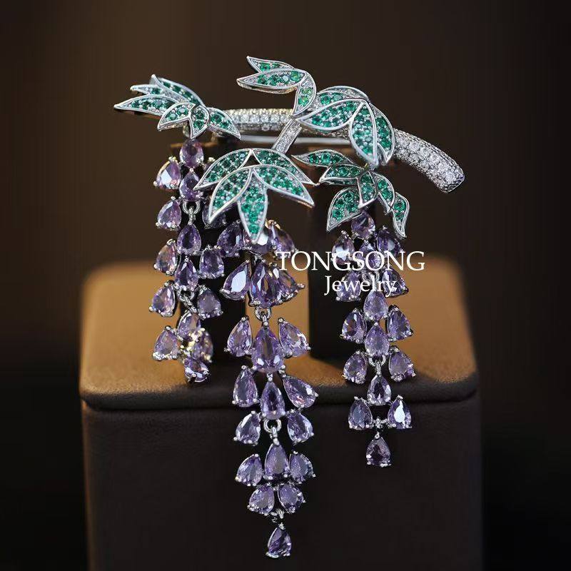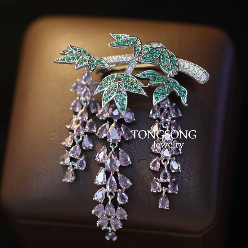 【紫藤梦镜】紫藤花胸针灵动流苏微镶女满钻优雅轻奢配饰胸花别针