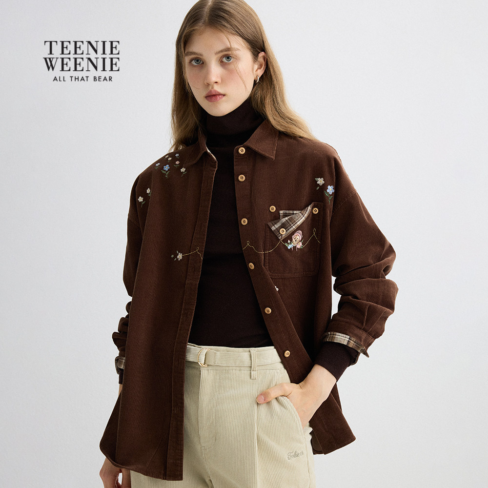 【赵露思同款】TeenieWeenie小熊女装衬衫秋冬季舒适格纹衬衣上衣