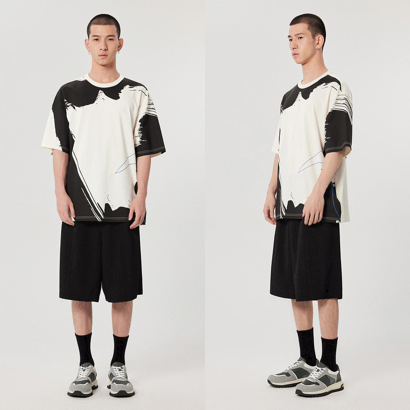 速写outlets奥莱男装春秋中短裤休闲宽松直筒五分裤OVERSIZE通勤