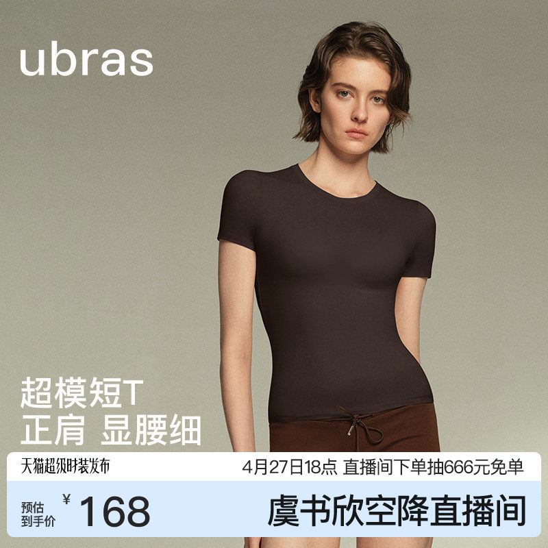 ubras美形裸感短袖内搭t恤女夏黑色打底衫高弹美体上衣2026新款