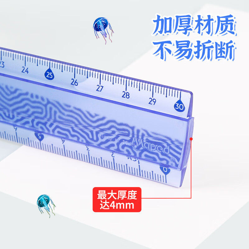 马培德直尺水母乐园系列透明尺子高颜值多功能刻度尺小学生用文具