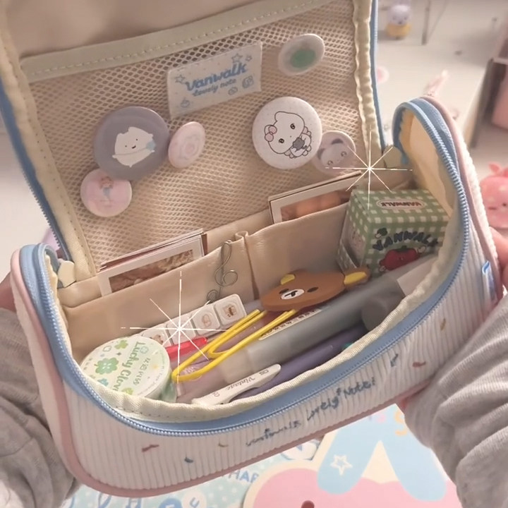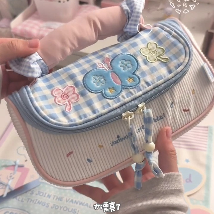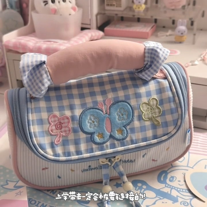 多巴胺刺绣笔袋文具盒女孩款高颜值可爱学生便携手提铅笔袋大容量