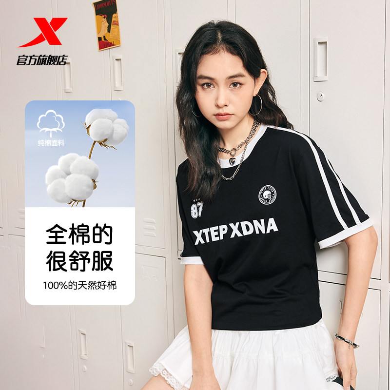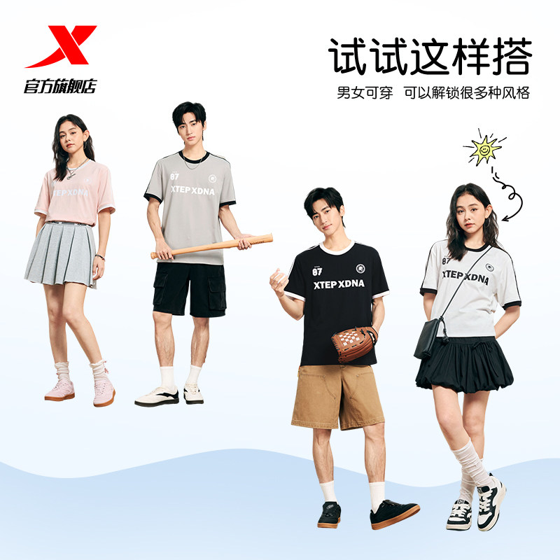 特步圆领短袖T恤男官方新款夏季情侣休闲半袖上衣简约女运动体恤