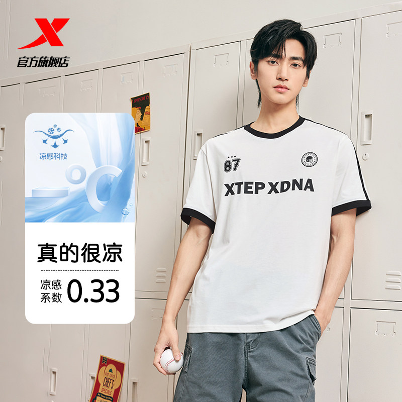 特步速干T男夏季宽松短袖冰丝户外跑步T恤透气上衣男士健身运动服
