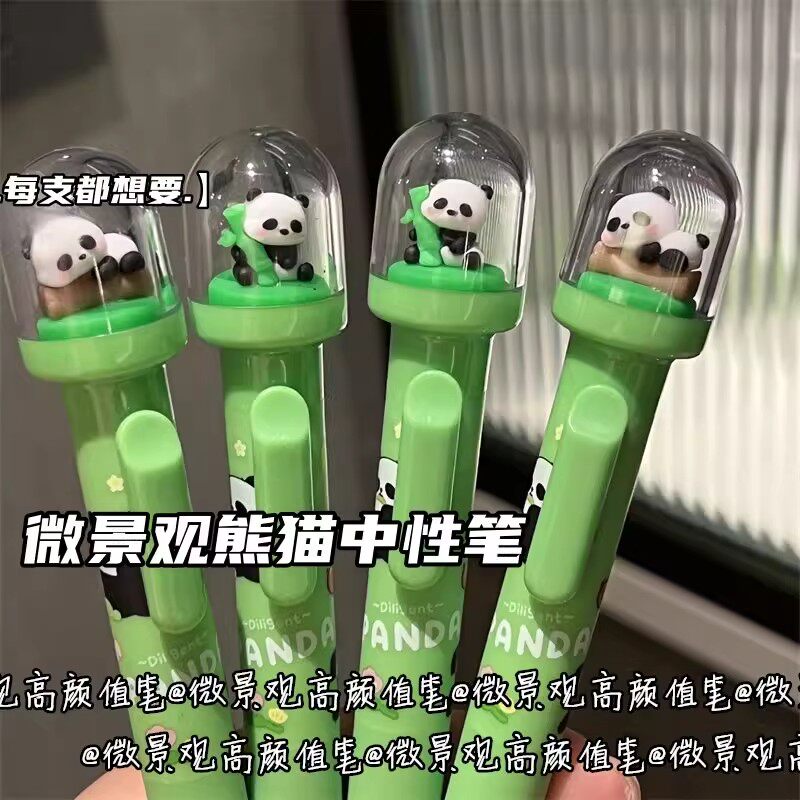 微景观熊猫中性笔高颜值可爱学生卡通按动签字笔水性国宝黑色0.5