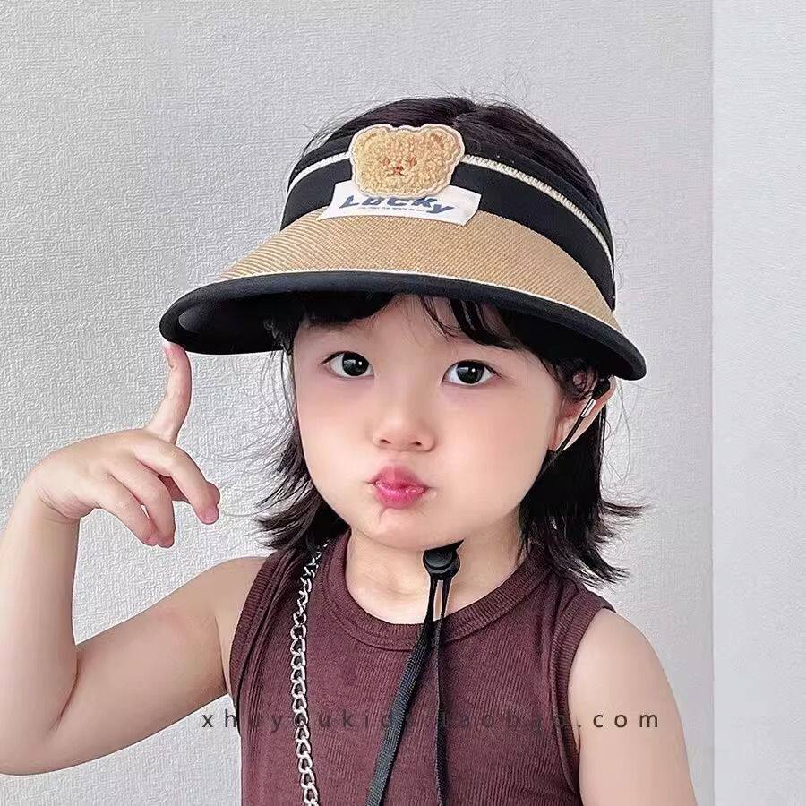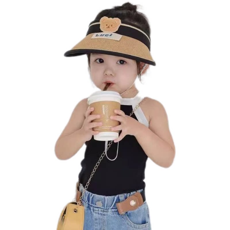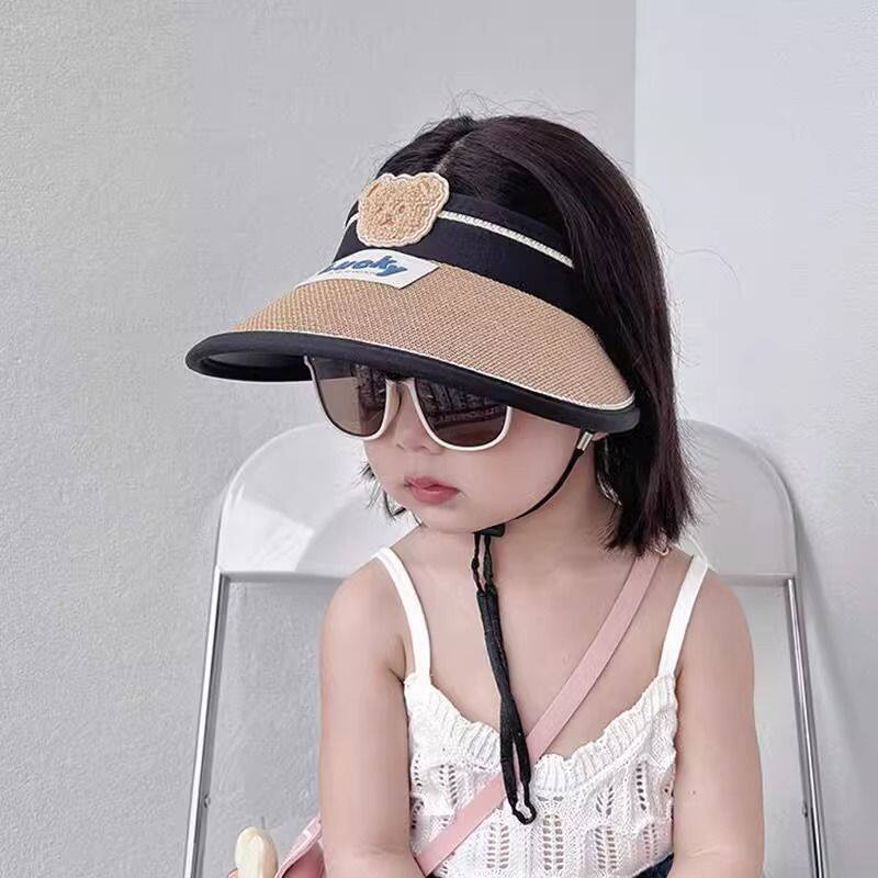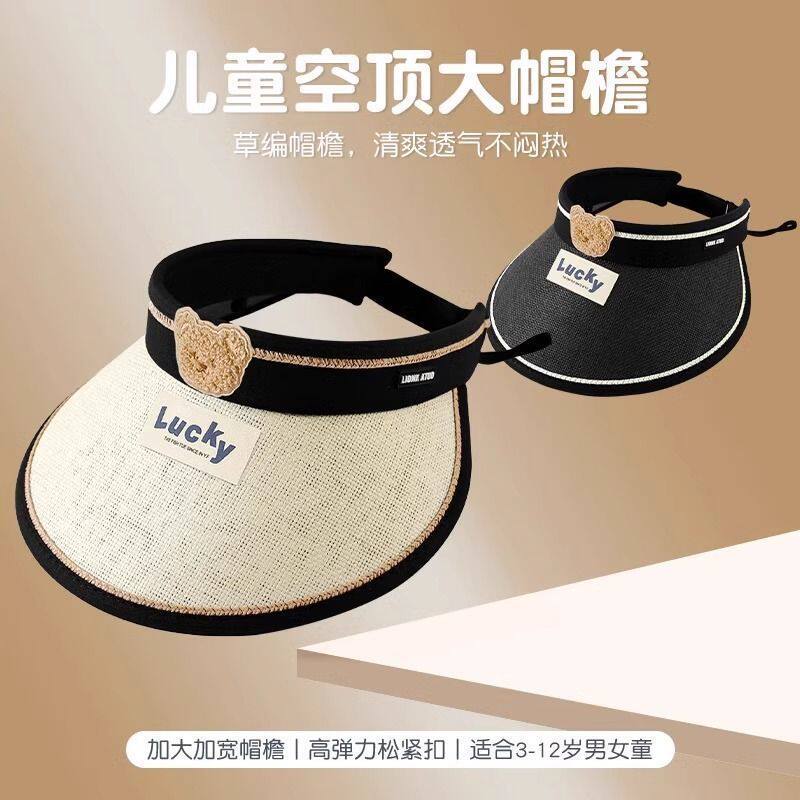 儿童夏季可卷遮阳帽卡通小熊大檐草帽空顶帽出游遮阳防紫外线帽子