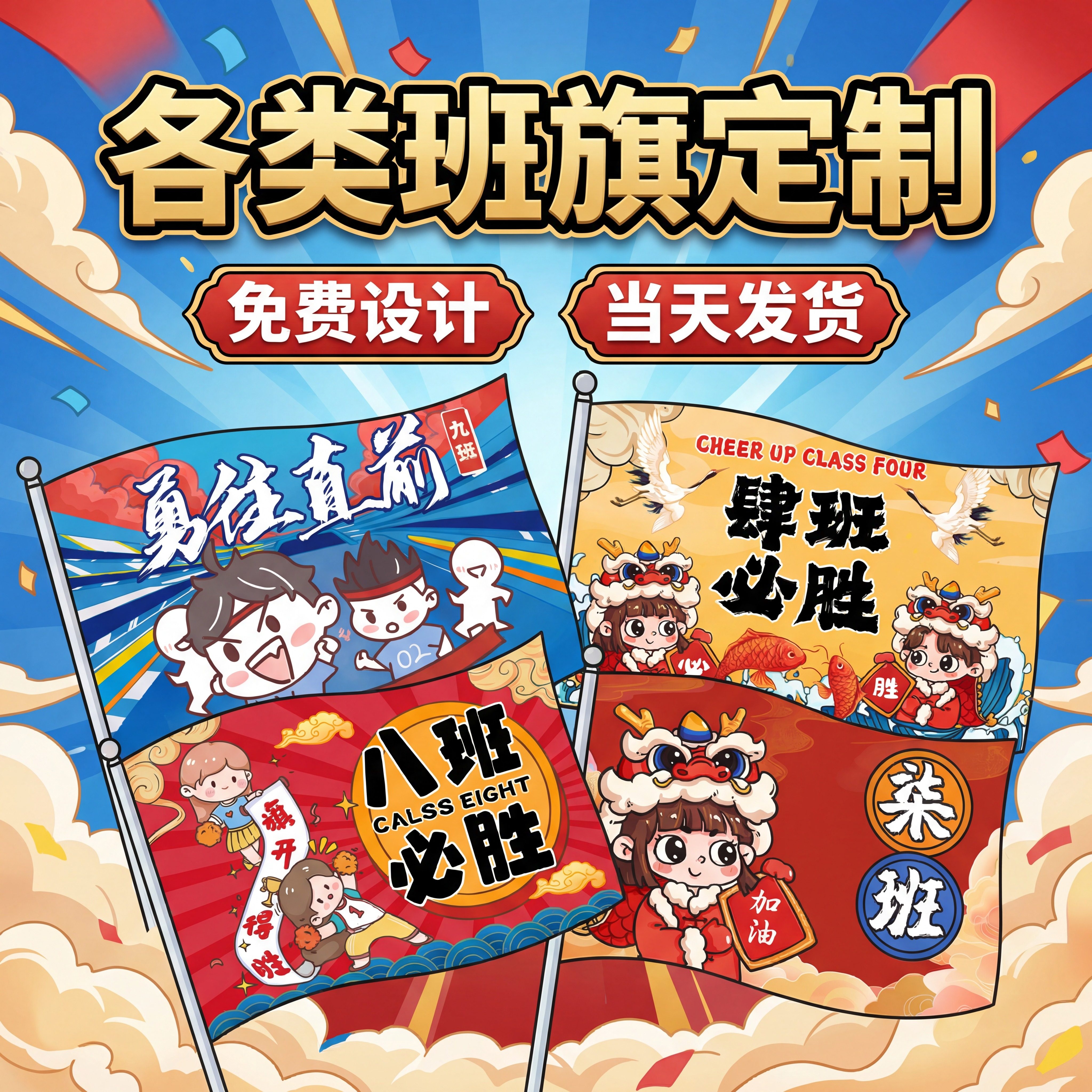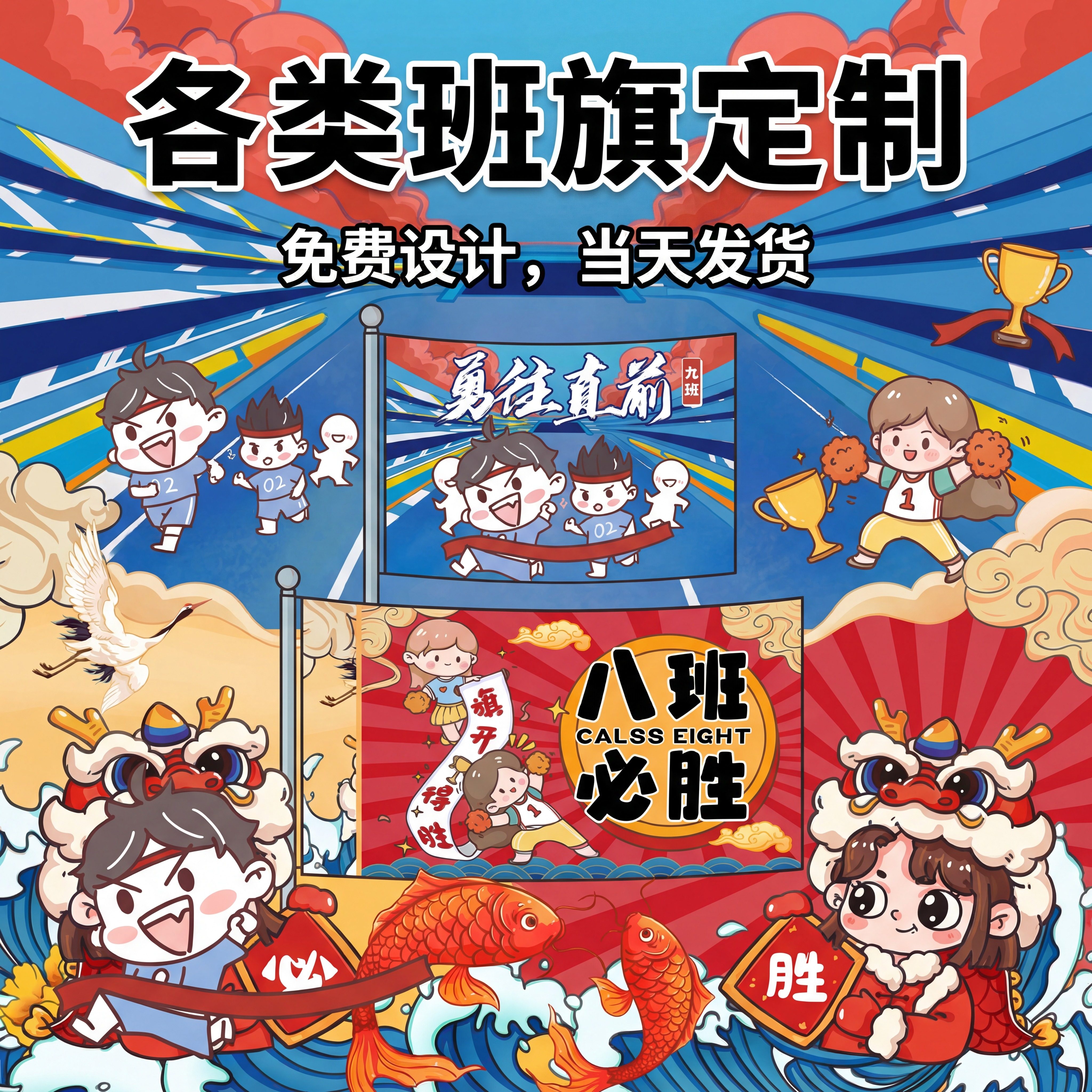 班旗定制运动会队旗定做小学生初中生校运会入场手持带杆大旗幼儿园班徽彩旗设计班级比赛助威旗帜制作
