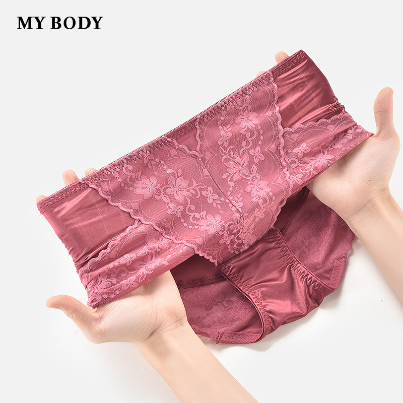 3件99|商场同款MYBODY内裤女精致蕾丝舒适无痕高腰防卷边平角裤