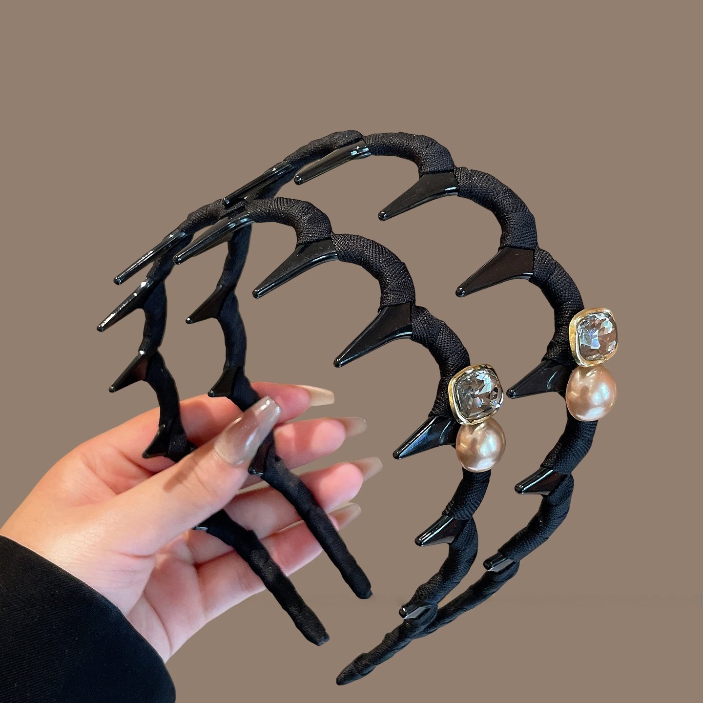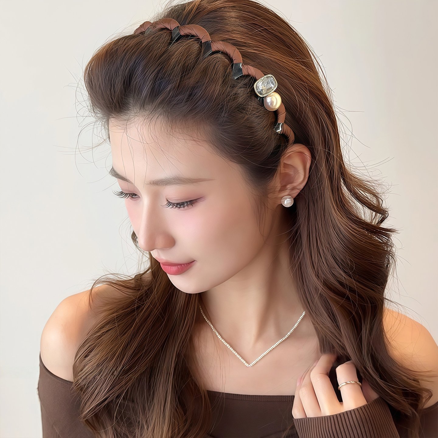 方形水钻高颅顶发箍女日常外戴高级感头箍带齿防滑压发发捆发窟