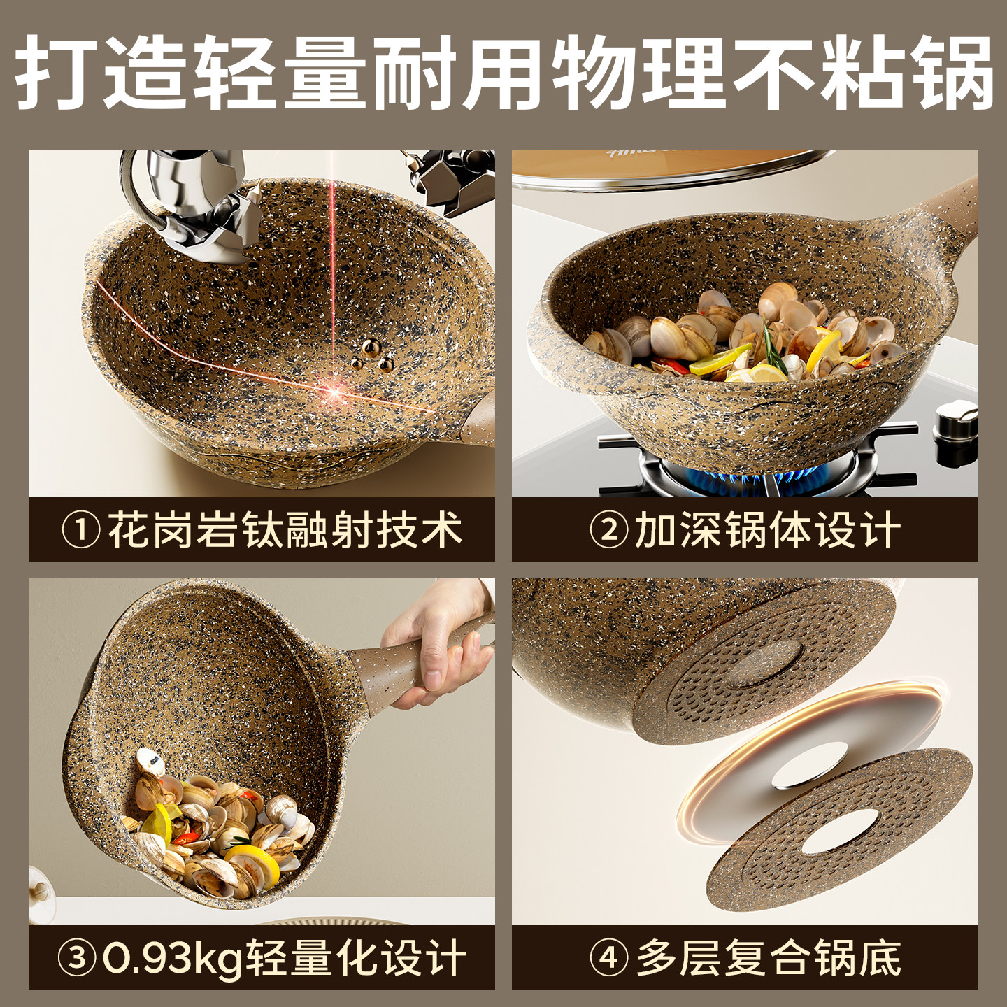 韩国麦饭石不粘锅炒锅家用电磁炉燃气灶通用炒菜平底不沾锅麦石锅