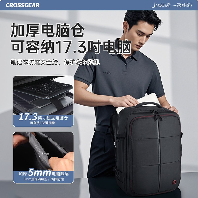 CROSSGEAR十字勋章瑞士军刀1345678寸商务旅行大容量独立鞋仓干湿分离防震摔笔记本电脑双肩书背包可挂行李箱