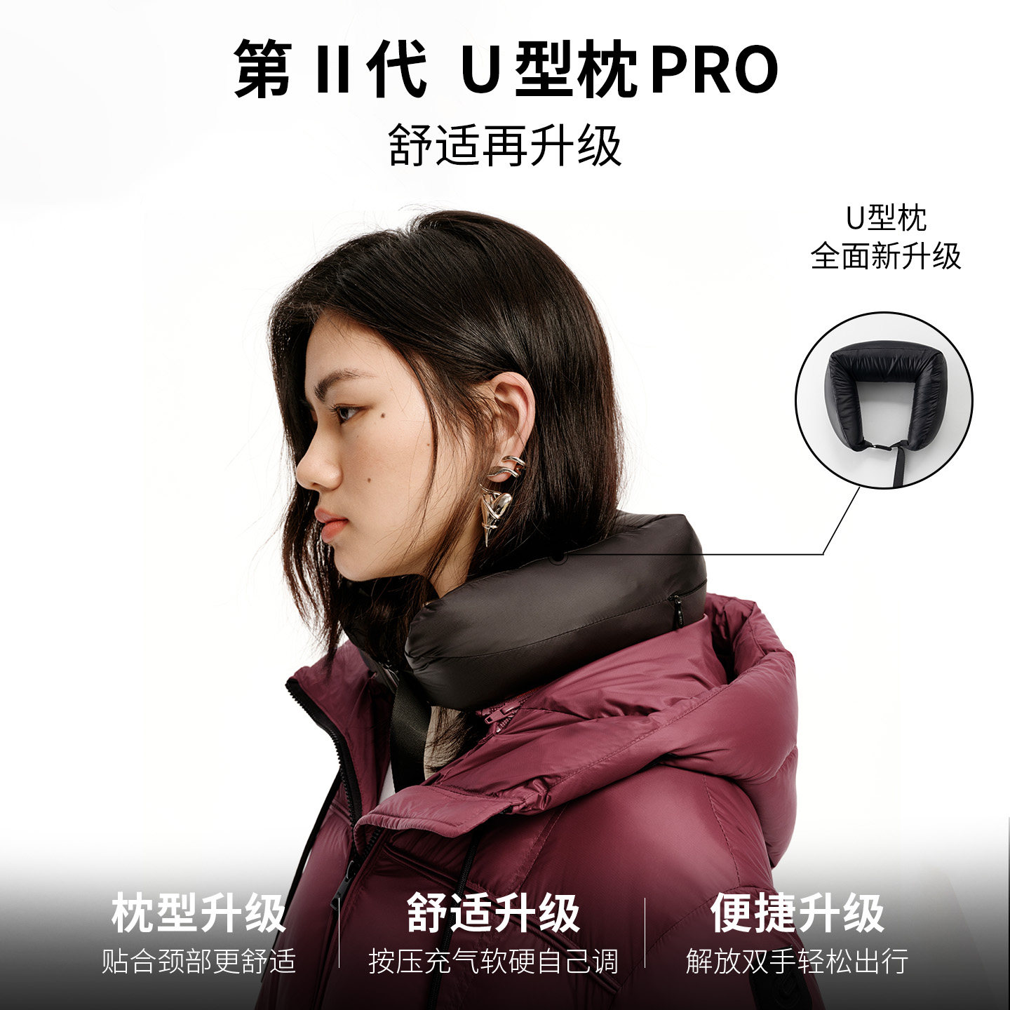 艾莱依短款U型枕羽绒服女时尚设计感腰部抽绳显瘦外套高级鹅绒服