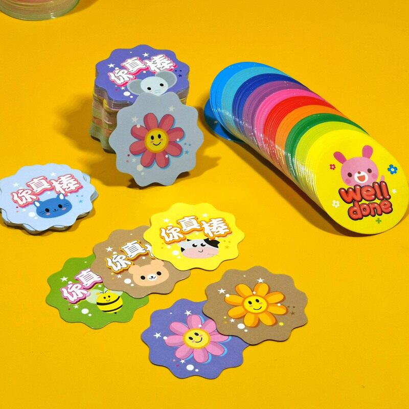 教育培训幼儿园学生奖励老师教学积分币英语表扬卡外星可爱动物