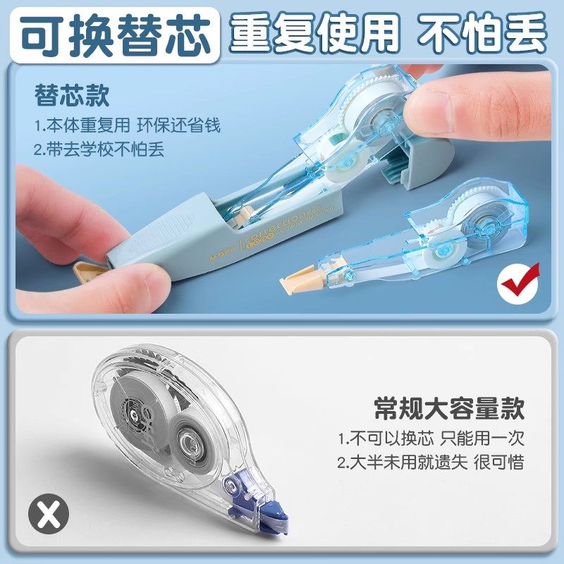 晨光修正带可换替芯涂改带ins高颜值顺滑改正带改字带学生用便携耐用修改带初中生日常改错必备学习文具用品