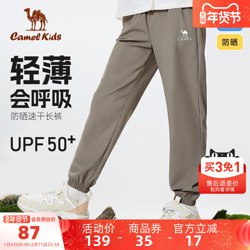 骆驼儿童裤子透气防蚊裤女孩宽松长裤中大童束脚裤男童运动速干裤