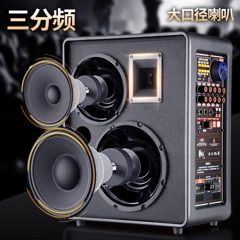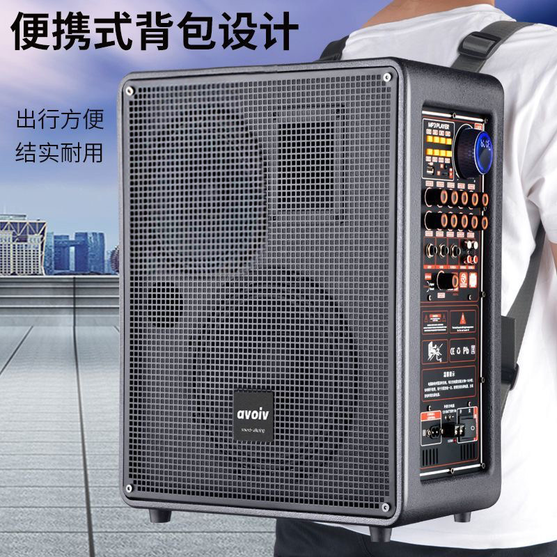 热卖欧曼户外背带弹唱音响三分频广场舞叫卖蓝牙插卡直播麦高音箱