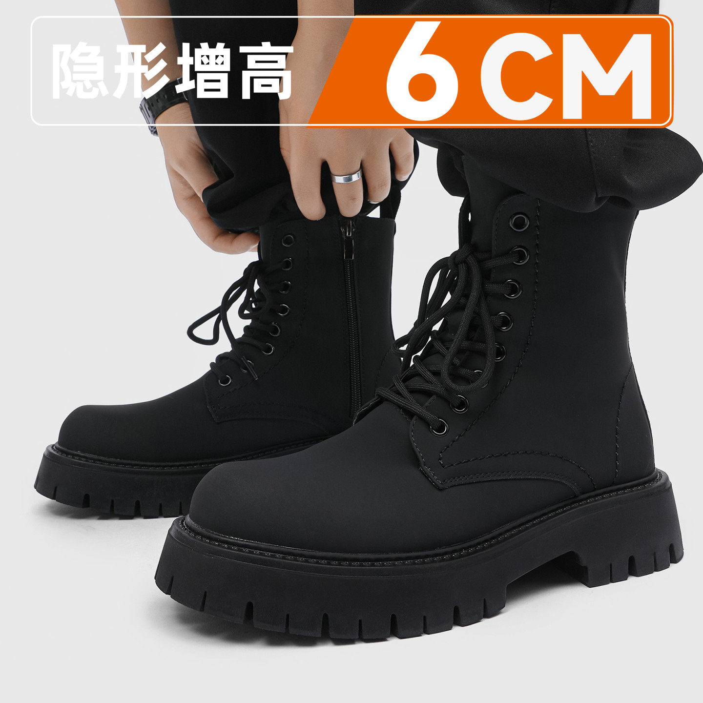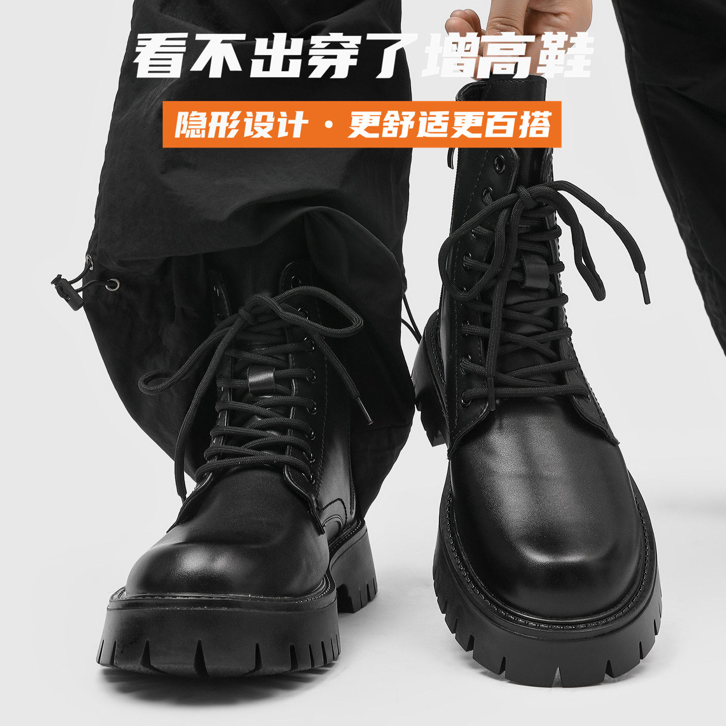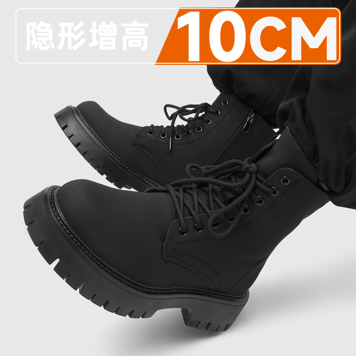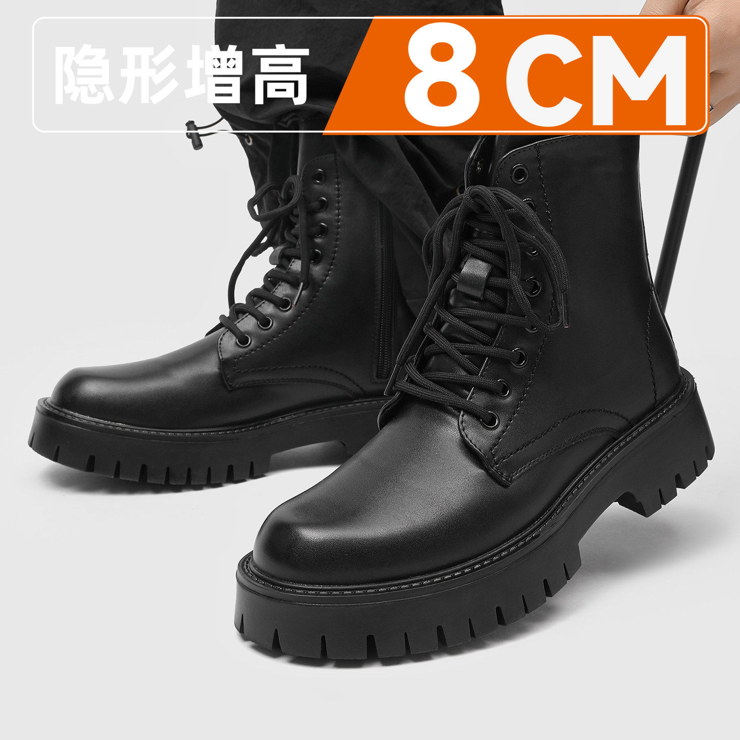 马丁靴男英伦风隐形内增高10cm高帮皮鞋春季透气中帮机车靴子皮靴