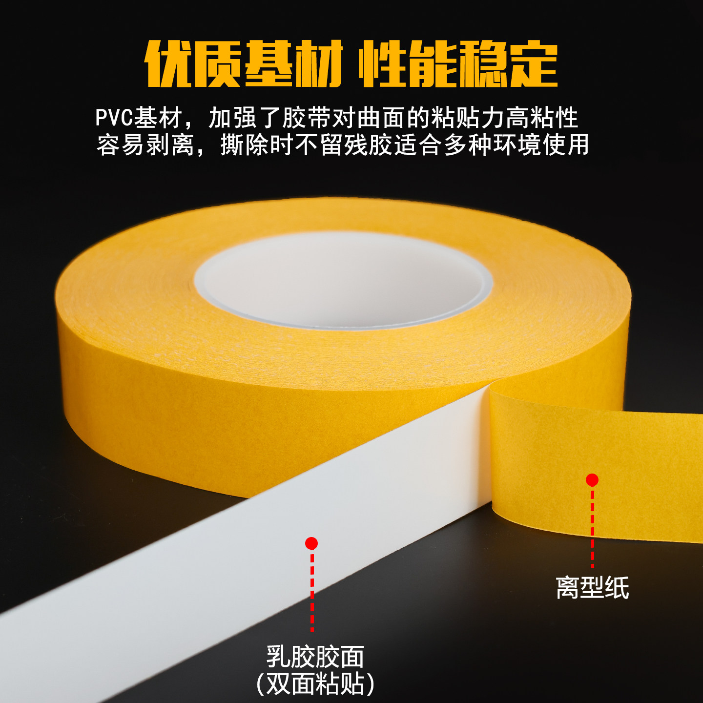 PVC无痕双面胶黄色纸乳白色强力烫金版CNC加工中心铝雕刻机刀模模具固定易清理耐高温双面胶带0.225mm厚