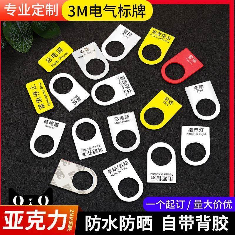 急停开关电源电气标识铭牌配电柜配电箱控制柜箱标牌启动复位暂停按钮机器指示牌设备标牌亚克力标签框定做